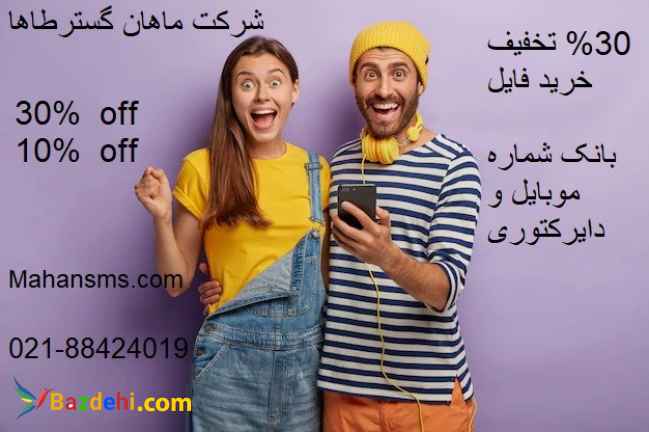 شرکت ماهان گستر طاها مفتخراست از سال 1389 مجری بزرگترین ، کاملترین و بروز ترین بانک های اطلاعاتی و شماره موبایل ایران بامجوز رسمی نماد اعتماد به همراه 85میلیون عدد شماره موبایل مشاغل تهران و شهرستانها ****(%30 تخفیف برای خرید فایل های بالای 1 میلیون تومان**** ****%10 تخفیف برای خرید فایل های بالای 500 هزارتومان)**** مشاغل پزشکي با بيش از 190 هزار شماره مشاغل ساختمان270 هزار شماره مشاغل صنعتي و توليدي 390 هزار شماره مديران و کارخانجات 145 هزار شماره برای مشاهده قیمت ها و توضیحات بیشتر وارد سایت زیر شوید و در قسمت جستجو فایل مورد نظر را خریداری نمایید Mahansms.com یا با شماره های زیر تماس حاصل فرمایید 09212181037 02188424019