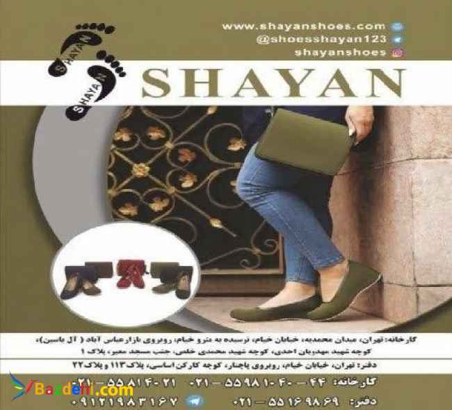 تولیدی کفش شایان پخش کیف و کفش زنانه ارزان تولید انواع کیف و کفش درخیام تولیدی کفش در مرکز تهران تولید کننده انواع کیف و کفش تولیدی کفش های زنانه و مردانه مجلسی و اسپورت و بچه گانه و تولید کننده کیف های زنانه و مردانه در انواع طرح های مجلسی و اسپرت مجموعه تولیدی کیف و کفش شایان به عنوان یکی از پیشگامان صنعت کیف و کفش در ایران با سالها سابقه در زمینه تولید این محصولات در حال حاضر با عرضه بسیار متنوع انواع کیف و کفش های حراجی ارزان قیمت آمادگی همکاری با تمامی کسبه محترم در سراسر ایران و فروشگاه های عرضه کیف کفش ،تک فروشی ها ، عمده فروشی ها را دارد. محصولات تولید شایان : • انواع کفش های زنانه پاشنه دارمجلسی • انواع کفش های زنانه مجلسی پاشنه 3 و 7 • انواع کفش های زنانه راحتی ( کفش کالج ) • انواع کفش مردانه ( کفش مجلسی و راحتی ) • انواع کفش های دخترانه پاشنه دار و تخت • انواع صندل و دمپایی ارزان قیمت • انواع کیف های مدرسه ، کوله پشتی تمامى محصولات شایان داراى گارانتى كيفيت بوده تولیدی شایان در تلاش است مطلوبات مشتريان خود را به نحو احسنت براورده نموده و خاطره خوشى را براى آن ها رقم زند یه تولیدی کفش فروشی که با سود خیلی کم به شما کفش میفروشه اینستاگرام: https://www.instagram.com/shayanshoes کانال تلگرام : http://t.me/shoesshayan123 وب سایت : http://shayanshoes.com