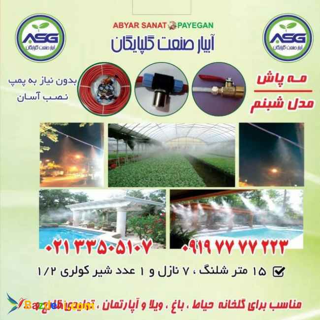 ابیارصنعت گلپایگان تهوری. اولین وتنها تولید کننده تایمر ابیاری با شیربرقی درایران با نام باران وبهسان.با گارانتی یک ساله. اولین تولید کننده مهپاش بانام شبنم ومهسان.بدون نیازبه برق وپمپ .کارکرد بااب شهری. دفتر فروش تهران.خ۱۵خرداد شرقی پ۱۵۷ ط اول ۰۲۱۳۳۵۰۵۱۰۷ 09197777223 09121182448 تایمر ابیاری برقی تایمر ابیاری مهپاش خانگی تایمر برقی مهپاش خانگی تایمر ابیاری نازل مهپاش پن پمپ مهپاش
