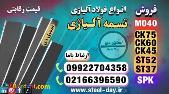 تسمه آلیاژی-فروش انواع تسمه آلیاژی-تسمه فنری-فولاد آلیاژی ((بهترین قیمت)) ((قیمت رقابتی)) تسمههای پرکاربرد در صنایع مختلف تسمه st52-تسمه st37-تسمه Ck45-تسمه MO40-تسمه Ck60-تسمه ck75-تسمه SPK- تسمه spkr-تسمه spknl-تسمه آموتیت تسمه آلیاژی از برشهای یکسان از انواع ورق نسبت به کاربرد مورد نیاز تولید میشود. تسمه آلیاژی معمولاْ به دو روش نورد گرم و ماشینکاری تولید میشود. که عبارت است از تسمههای نوردی به صورت برش از ورق و با اندازههای طولی متفاوت و تسمههای ماشینکاری. بسیار خوش تراش و به صورت شاخههای منظم و صاف از تسمهآلیاژی برای ساخت قطعات مشخص. بستهبندی بارهای سنگین که بیش از هر خصوصیت دیگری مقاومت و استحکام بالا مورد نیاز است استفاده میشود. تسمههای فلزی در صنوف و صنایع مختلف کاربردهای فراوانی دارند. این تسمهها از موادی مانند فولاد ضدزنگ،آلومینیوم، تیتانیوم و نیکل تشکیل شدهاند. استیل دی (Steel day) با سالها تجربه در زمیه عرضه و توزیع انواع استیل بگیر و استیل نگیر. و همچنین انواع فولادهای نسوز و فولادهای دریایی و ساختمانی توانسته است رضایت مشتریان خویش را فراهم نماید. زیرا کارشناسان مجرب استیل دی آماده اند تا در زمینه مشاوره و ارائه دادن بهترین پیشنهادات خرید محصول به مشتریان عزیز خدمات رسانی نمایند.صنعتگر محترم و گرامی از اینکه استیل دی را جهت خرید فولاد آلیاژی مورد نیاز خویش انتخاب می نمایید از شما سپاسگزاریم.تمام محصولات استیل دی بر حسب نوع کالا دارای گواهینامه ها و آنالیزهای معتبر داخلی و خارجی می باشند. ارتباط با ما: 09922704358 02166396590 واتس آپ: 09922704358 ارتباط با ما در شبکه های اجتماعی https://t.me/steel_day تلگرام https://www.instagram.com/steel_day.ir اینستاگرام https://twitter.com/MDlakan توییتر https://lnkd.in/eEExHwW3 لینکدین https://www.pinterest.com/steeldayfoolad/ پینترست https://www.tumblr.com/steel-day تامبلر ایمیل: این آدرس ایمیل توسط spambots حفاظت می شود. برای دیدن شما نیاز به جاوا اسکریپت دارید https://steel-day.ir/ وبسایت استیل دی