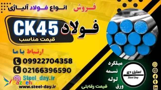 فروش فولاد ck45-قیمت فولاد ck45-فولاد آلیاژی ck45 ((بهترین قیمت)) ((قیمت رقابتی)) ،یکی از رایجترین فولادی است که هم بصورت طبیعی و هم در حین فرآیند نورد گرم تولید می گردد. در رده های فولادهای کربن متوسط قرار می گیرد. نام دیگر این نوع آلیاژ فولاد 1.1191 نیز می باشد. کاربرد این فولاد استفاده در شرایط دمای بسیار بالا و استفاده در شرایط دمایی بسیار پایین، استفاده از این فلز در ابزار و وسایلی که نیاز به استحکام بالا دارند، جهت ساختن مخازن تحت فشار، مقاوم در برابر نمکهای دریایی و استفاده در صنایع دریایی، فلز مقاوم در برابر زنگ زدگی، مقاوم در برابر خوردگی هوا، صنایع هواپیما سازی، راه سازی، پل سازی و شهرسازی، صنایع قطعه سازی، صنایع ساخت ابزار، مقاوم در برابر اسید، سختی بسیار بالا، استفاده از این نونعن فولاد در مصارف خاص. استیل دی فروشنده فولاد ck45 در مقاطع میلگرد، ورق، لوله، تسمه می باشد. استیل دی (Steel day) با سالها تجربه در زمیه عرضه و توزیع انواع استیل بگیر و استیل نگیر. و همچنین انواع فولادهای نسوز و فولادهای دریایی و ساختمانی توانسته است رضایت مشتریان خویش را فراهم نماید. زیرا کارشناسان مجرب استیل دی آماده اند تا در زمینه مشاوره و ارائه دادن بهترین پیشنهادات خرید محصول به مشتریان عزیز خدمات رسانی نمایند. صنعتگر محترم و گرامی از اینکه استیل دی را جهت خرید فولاد آلیاژی مورد نیاز خویش انتخاب می نمایید از شما سپاسگزاریم. تمام محصولات استیل دی بر حسب نوع کالا دارای گواهینامه ها و آنالیزهای معتبر داخلی و خارجی می باشند. ارتباط با ما: 09922704358 02166396590 واتس آپ: 09922704358 ارتباط با ما در شبکه های اجتماعی https://t.me/steel_day تلگرام https://www.instagram.com/steel_day.ir اینستاگرام https://twitter.com/MDlakan توییتر https://lnkd.in/eEExHwW3 لینکدین https://www.pinterest.com/steeldayfoolad/ پینترست https://www.tumblr.com/steel-day تامبلر ایمیل: این آدرس ایمیل توسط spambots حفاظت می شود. برای دیدن شما نیاز به جاوا اسکریپت دارید https://steel-day.ir/ وبسایت استیل دی