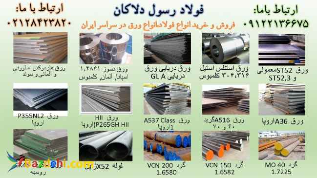 فروشگاه فولاد رسول دلاکان ارتباط با ما: 09122136675-02128423820 فولاد رسول دلاکان به مدیریت جناب آقای رسول دلاکان با سابقه ایی 20 ساله و تجربه ایی گرانبها در زمینه عرضه انواع آلیاژ فولادی، و فولاد ضد سایش،ورق دریایی، ورق نسوز، ورق مخازن بخار، در سطح کشور فعالیت مینماید: برخی از محصولات از قبیل:فولادهای آلیاژی ورق های آلیاژی از ضخامت به میل: 3 میل الی 250 میل هم به صورت برش و هم به صورت برگ کامل ، میلگرد ضخامت به میل: 8 الی 2000لوله تسمه استاندارد ST52ورق لوله میلگرد تسمه موجودA516 6R 60-70ورق میلگردفولاد آلیاژیفولاد ضد سایش هاردوکس 400 - 450 - 500-CK45میلگرد های هاردکروم جهت جک لودر، لوله های سیلندری مخصوص جکفولاد نسوز1/4841بصورت ورق میلگرد لولهورق A516 G60-7016MO315MO3بصورت ورق ،ورق میلگرد لوله P265GH HiiP355NL2S355 joS275 jrورق میلگرد لوله ST52A361/72181/72251/17401/25101/20801/24361/23791/2510A387 GR11 Class1A537 Class1Weldox700-110041404130ورق های دریاییA285 (CA283 (Cفولاد آلیاژیSPK 1/2080MO40 1/7225VCN150 1/6582تسمه فولاد فنر 7176/ 1 جهت ساخت تیغه های آسیاب لطفا جهت اطلاع از قیمت و نوع محصولات با شماره زیر تماس حاصل فرمائید: ارتباط با ما : 09122136675-02128423820 ورق نسوز-ورق دریایی-ورق ضداسید-ورق ضدسایش-ورق هاردوکس-هاردوکس-نبشی و ناودانی-تسمه-تسمه فولاد فنر-ورق آتشخوار-ورق آجدار-میلگرد-میلگرد غیر آجدار-میلگرد ساده-قیمت میلگرد-قیمت روز میلگرد-قیمت ورق-قیمت روز ورق-ورق ضخیم-ورق400-ورق500-ورق450-ورق420-ck45-ck46-st52-st37--انواع ورق-انواع فولاد-لوله-لوله آلیاژی-لوله آتشخوار-قوطی-پروفیل-خرید-فروش-عمده فروشی-hardox