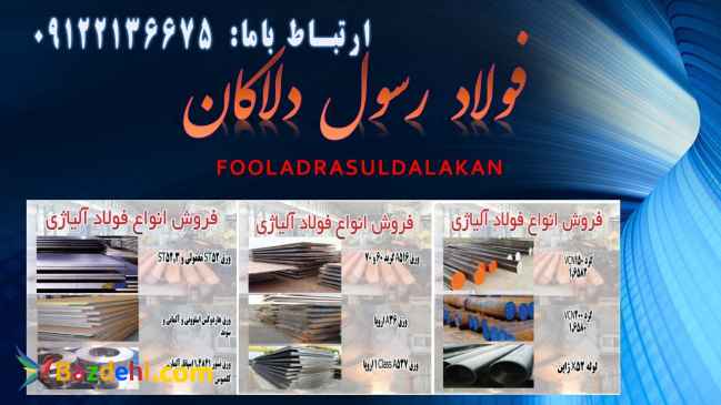 فروشگاه فولاد رسول دلاکان ارتباط با ما: 09122136675-02128423820 فولاد رسول دلاکان به مدیریت جناب آقای رسول دلاکان با سابقه ایی چندین ساله و تجربه ایی گرانبها در زمینه عرضه انواع آلیاژ فولادی، و فولاد ضد سایش،ورق دریایی، ورق نسوز، ورق مخازن بخار، در سطح کشور فعالیت مینماید: برخی از محصولات از قبیل:فولادهای آلیاژی ورق های آلیاژی از ضخامت به میل: 3 میل الی 250 میل هم به صورت برش و هم به صورت برگ کامل ، میلگرد ضخامت به میل: 8 الی 2000لوله تسمه استاندارد ST52ورق لوله میلگرد تسمه موجودA516 6R 60-70ورق میلگردفولاد آلیاژیفولاد ضد سایش هاردوکس 400 - 450 - 500-CK45میلگرد های هاردکروم جهت جک لودر، لوله های سیلندری مخصوص جکفولاد نسوز1/4841بصورت ورق میلگرد لولهورق A516 G60-7016MO315MO3بصورت ورق ،ورق میلگرد لوله P265GH HiiP355NL2S355 joS275 jrورق میلگرد لوله ST52A361/72181/72251/17401/25101/20801/24361/23791/2510A387 GR11 Class1A537 Class1Weldox700-110041404130ورق های دریاییA285 (CA283 (Cفولاد آلیاژیSPK 1/2080MO40 1/7225VCN150 1/6582تسمه فولاد فنر 7176/ 1 جهت ساخت تیغه های آسیاب لطفا جهت اطلاع از قیمت و نوع محصولات با شماره زیر تماس حاصل فرمائید: ارتباط با ما : 09122136675-02128423820