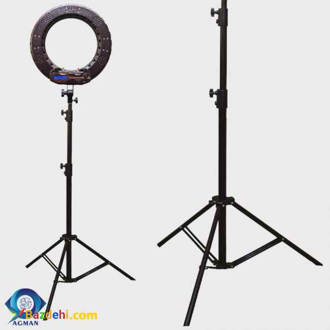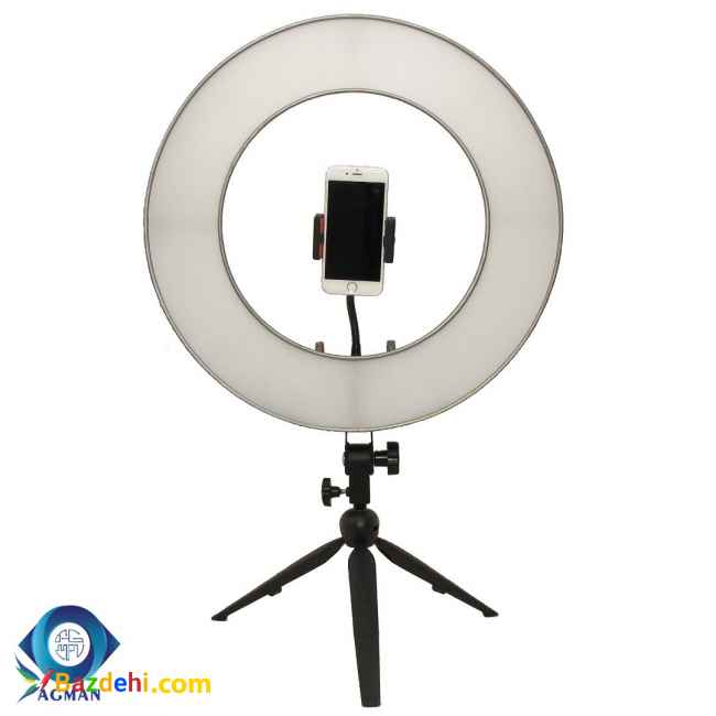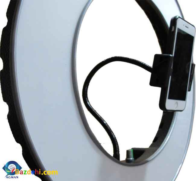 تولید،فروش و اجاره رینگ لایت اَگمان رنگ مشکی دارای 640 عدد ال ای دی 55وات 18000لومن قطر 46سانتی متر دمای نور 2900 تا 6500 قابلیت تنظیم گروهبندی نور زاویه نوردهی 120 درجه دارای سنسور دما مجهز به صفحه نمایشگر به همراه هولدر موبایل،آینه دوحالته،سه پایه رومیزی،سه پایه بلند،آداپتور و کیف رینگ لایت دارای 6ماه گارانتی