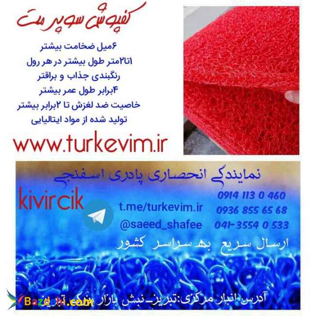 متن جدید این محصول چند منظوره سری جدید سوپرمت تولید کارخانه kivircik ترکیه، با ویژگیهای منحصر به خود میباشد. ابعاد رول کامل:به عرض یک متر و طول ۱۶متر و تراکم بالا با ضخامت 16 میل ،پلمپ شده به همراه برگه های اصالت از کارخانه میباشد. قابلیت برش در سایز و شکل دلخواه بدون از دست رفتن بافت و استحکام محصول تنوع رنگ: سبز،آبی،قهوه ای،کرم،زرشکی،قرمز،مشکی ،طوسی موارد استفاده:جلوی درب اماکن ،روی پله ها،کف فضاهای دارای احتمال لغزندگی،راهروها،لابی اماکن،کف آسانسور ،کف پاگرد ،دور استخر،سرویس بهداشتی،کف تراس ،فضاهای ورزشی و تفریحی،فرش تشریفات تالار،هتل،فرودگاه،رستوران،کافه تماس و سفارش: ارسال عمده وخرده سریع و مطمئن به سراسر کشور t.me/turkevimir : آدرس کانال تلگرام https://www.turkevim.ir : آدرس سایت ۰۴۱۳۵۵۴۰۵۳۳ - ۰۹۱۴۱۱۳۰۴۶۰ - ۰۹۳۶۸۵۵۶۵۶۸ آدرس دفتر مرکزی:تبریز-نبش بازار بزرگ تبریز-نمایندگی تورک اویم