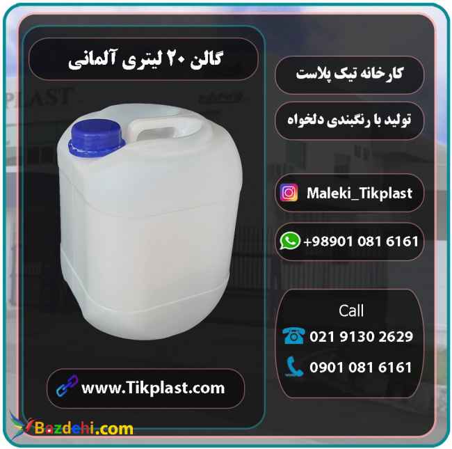 کارخانه تیک صنعت پلاست طراح یکی از تولید کنندگان به نام و مطرح انواع مصنوعات پلاستیکی در ایران است و انواع بطری پلی اتیلن و پت را در ظرفیت و مدل های مختلف طراحی و تولید می کند.گالن پلاستیکی یکی از محصولات پر مصرف و کاربردی در صنایع شوینده و شیمیایی و ... است که در ظرفیت و مدل های مختلف طراحی و تولید می شود.گالن بیست لیتری صنعتی یکی از گالن های بسیار پر مصرف و کاربردی است که با توجه به حجم و ظرفیت بالا در مصلرف صنعتی و در کارگاه ها و ... مورد استفاده قرار می گیرد.گالن 20 لیتری با استفاده از ماده ای به نام پلی اتیلن تولید می شود.پلی اتیلن از مواد اولیه پلاستیک پر مصرف در جهان است که به دلیل کیفیت بسیار بالا، به فراوانی مورد استفاده قرار می گیرد.گالن 20 لیتری پلی اتیلن با قیمت بسیار مناسبی به فروش می رسد و مشتریان می توانند با خرید مستقیم از کارخانه خرید مقرون به صرفه ای داشته باشند.قیمت گالن 20 لیتری دست دوم نسبت به گالن 20 لیتری پلی اتیلن نو مناسب تر است ، اما به لحاظ مقاومت و کیفیت نیز ضعیف تر از گالن 20 لیتری نو است. قیمت گالن 20 لیتری پلی اتیلن گالن بیست لیتری صنعتی قیمت گالن 20 لیتری دست دوم فروش عمده گالن 20 لیتری آلمانی و کتابی 20 لیتری پلاستیکی قیمت عمده گالن 20 لیتری قیمت گالن 20 لیتری دست دوم برای خرید گالن 20 لیتری آلمانی در شهر های مشهد ، اصفهان ، تهران ، کرج ، شیراز ، کرمانشاه ، اهواز ، زاهدان ، بوشهر ، خوزستان ، تبریز ، ارومیه ، گرگان و ... با شماره های موجود فقط تماس حاصل نمایید. آدرس کارخانه : کرج ، هفت جوی ، شهرک صنعتی زرین دشت مدیر فروش : 09021613823