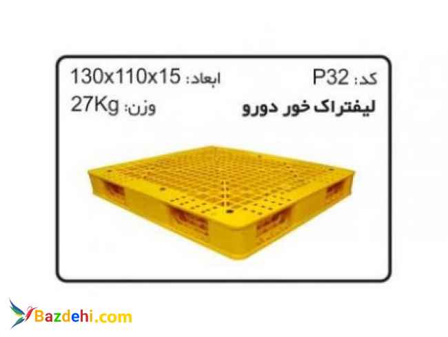 تولید کننده انواع پالت صنعتی پالت های پلاستیکی P32 کد محصول: p32 نوع کالا: پالت پلاستیکی مشبک ابعاد داخلی: ابعاد خارجی: 15*110*130 وزن:27 kg مقدار تحمل بار:ثابت 5000kg/ متحرک 1500kg نوع مواد: موارد استفاده: کارخانه ها ، کارگاه ها و پر کردن کف انبار ویژگی های محصول: ، جا به جایی این پالت با استفاده از لیفتراک انجام می شود،این پالت دارای سطحی مشبک می باشد و میتوان از دو روی پالت استفاده کرد نام های دیگر محصول: پالت 27 کیلویی، پالت لیفتراک خور،پالت دو رو رنگ های متعارف: تعداد جایگیری در کانتینر:320