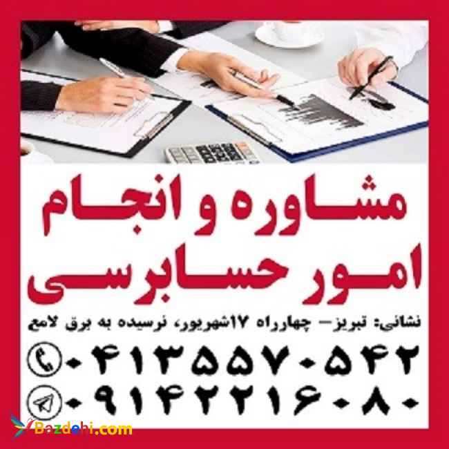 انجام امور حسابرسی مالی تهیه گزارش فوری حسابرسی ، گزارشات و معاملات فصلی هدف مجموعه پایان دادن به نگرانی های شما و استرس و ریسک و جلوگیری از ضرر مالی و رهایی از پیچیدگی های مالیاتی و حذف پرداخت جرائم مالیاتی میباشد . امجموعه حسابداران خبره آذربایجان در تلاش است تا با ارائه بهترین راهکار با توجه به شرایط موجود شما را در این امر راهنمایی و کمک کند انجام امور حسابداری و حسابرسی مالی مشاور مالی و مشاوره مالیاتی تنظیم لایحه و اظهار نامه مالیاتی و تحریر دفاتر قانونی تهیه و تنظیم اظهارنامه مالیات بر ارزش افزوده ثبت سند حسابداری (جاری، معوقه ، بهم ریخته ) تهیه و تنظیم آئین نامه ها و دستورالعمل های مالی و اداری. شرکت حسابداران خبره آذربایجان در زمینه، خدمات حسابررسی و خدمات مالیاتی، خدمات حرفه ای را به مشتریان خود عرضه می کند برای کسب اطلاعات بیشتر در این زمینه می توانید با استفاده از تلفن زیر با کارشناسان حسابداران خبره آذربایجان تماس بگیرید. تلفن تماس: 09142216080 04135570542 وب سایت: www.azarca.ir