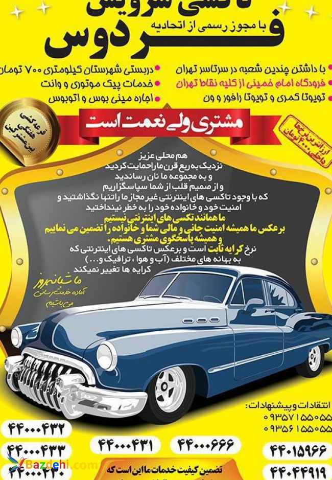 تاکسی دربستی،تاکسی دربست،تاکسی شهرستان دربستی،تاکسی دربست شهرستان،تاکسی دربستی بین شهری،تاکسی دربستی درون شهری،تاکسی دربست درون شهری، دربست، تاکسی فرودگاه امام خمینی - تاکسی فرودکاه امام خمینی -تویوتا کمری فرودگاه امام- تویوتا رافورفرودگاه امام -ون فرودگاه امام خمینی- رزرو ون فرودگاه امام خمینی -تاکسی شهرستان- رزروتاکسی شهرستان- تاکسی کیلومتری شهرستان -اجاره اتوبوس -تاکسی فرودگاه امام خمینی نزدیک--تاکسی دربست---تاکسی دربست---تاکسی دربست دراختیار-تاکسی دربستی شهرستان--تاکسی دربست شهرستان-تاکسی دراختیار-رزرو تاکسی دربست--رزرو تاکسی دربست شهرستان تویوتا کمری فرودگاه امام خمینی،تویوتا رافورفرودگاه امام،ون،سایت تاکسی فردوس-سایت تاکسی تلفنی فردوس-سایت پیک موتوری فردوس-سایت تاکسی فرودگاه امام خمینی-سایت ون فرودگاه امام خمینی-سایت رزرو تاکسی بین شهری-سایت تاکسی دربستی شهرستان-سایت تاکسی شهرستان شماره مارا از 118بخواهید ازگل امیراکرم ایران خودرو پروین پرند اسکندری ایرانپارس امام خمینی پارک ارم استادیوم آهنگ پارک ساعی ایرانشهر ایران زمین پارک شهر آبشار ایران خودرو برج میلاد پارک دانشجو تیراژه آفریقا ایران زمین جنت بیمارستان میلاد پاسگاه نعمت اباد توانیر آزادشهر امام زاده داوود بی بی سکینه پارک پردیسان تکاوران آ اس پ استانبول بلوار تعاون پارک جمشیدیه تجریش اباذر استادمعین بیهقی پامنار توحید ابوسعید احتشامیه بوستان ولایت پونک تهران ویلا آتی ساز انقلاب بهارشیراز پل ستارخان تهرانپارس اتابک امام حسین بابائیان پارک ملت تهرانسر اکباتان امامت باقرخان پارک نیاوران تهران نو آپادانا امیرآباد باغ شاطر پارک لاله توپخانه آشتیانی امین حضور باقرشهر پیامبر ترمینال آزادی احمدآباد اعدام باغ فیض پل مدیریت ترمینال شرق آجودانیه افسریه بسیج پارک وی ترمینال جنوب اختیاریه الهیه بلوار کشاورز پلیس ترمینال بیهقی آذری اسلامشهر برق آلستوم پیکانشهر آذربایجان طرح اقدسیه بیمه اکباتان پاتریس آذربایجان امامزاده حسن بنی هاشم پاستور ابوذرفلاح امامزاده معصوم بهجت آباد پاسداران ابتدا آراج امیریه بهشت زهرا پاسداران انتها آرژانتین امین آباد بهبودی پیچ شمیران آزادی اوین بهمن پل امیربهادر ایرانپارس امیراکرم بهارستان پل رومی آهنگ ایران زمین شهرک پارک بابائیان ج ح د ر س جهان کودک حافظ دروازه شمیران رسالت سیروس جلال ال احمد حر دامپزشکی راه اهن 13ابان جامی حسن اباد دولت ری سمنگان جام جم حسینی فردوس دریان نو ریحانی سوهانک جردن حشمتیه دستواره رودهن سبلان جلفا حق شناسان داراباد رودکی ستارخان جیحون حکیمیه دشت بهشت سراج جمالزاده خ ده ونک سردار جنگل جماران خواجه عبدالله دلاوران ز سرچشمه جمهوری خلیج دانشگاه امام حسین زرتشت سرو جوادیه خاک سفید دانشگاه تهران زعفرانیه سپاه جهان آرا خانی اباد نو دربند زنجان سپه جوانمردقصاب خراسان دروس سپهبدقرنی جهاد خزانه دردشت سهروردی چ خواجه نظام دروازه دولت سعادت اباد چهاردیواری دوراهی قپان سعد اباد چهاردانگه دیباجی جنوبی سه راه سلیمانیه چیذر درکه سئول چایچی دزاشیب سمیه چهارراه لشگر دهکده سید خندان چیتگر دولت اباد سی متری جی ش ش ص ف شکوفه شهدا شهرک استقلال صادقیه ف اول فراز شیخ بهایی شهرک غرب صادقیه ف دوم فاطمی ک شهرک دریا شادمان صالح اباد فیروزبهرام کاخ نیاوران شیراز شمالی شهرک بهاران صفائییه فلاح کریمخان شیراز جنوبی شهرک فرهنگیان فرشته کن شیر پاستوریزه شادآباد فدک کیانشهر شوش ض فرصت توحید کاج شهید گلاب ط ضرابخانه فرصت شیرازی کمالی شریعتی طالقانی ظ فدائیان اسلام کهریزک شهران طوس ظفر فلسطین کمیل شهرارا طرشت ع فرودگاه امام کاشانک شهر ری عشرت آّباد فرودگاه مهرآباد کارون شهدا غ عباس آباد فرمانیه کالج شماره2 غار عباسی فردوسی کاوه شمیران نو غفاری عظیمیه کرج فرجام کامرانیه شمس اباد عبدل آباد کردستان شهرک صحرا م ن ق کوهسار شهرک گلستان مینی سیتی ناصرخسرو قائم مقا