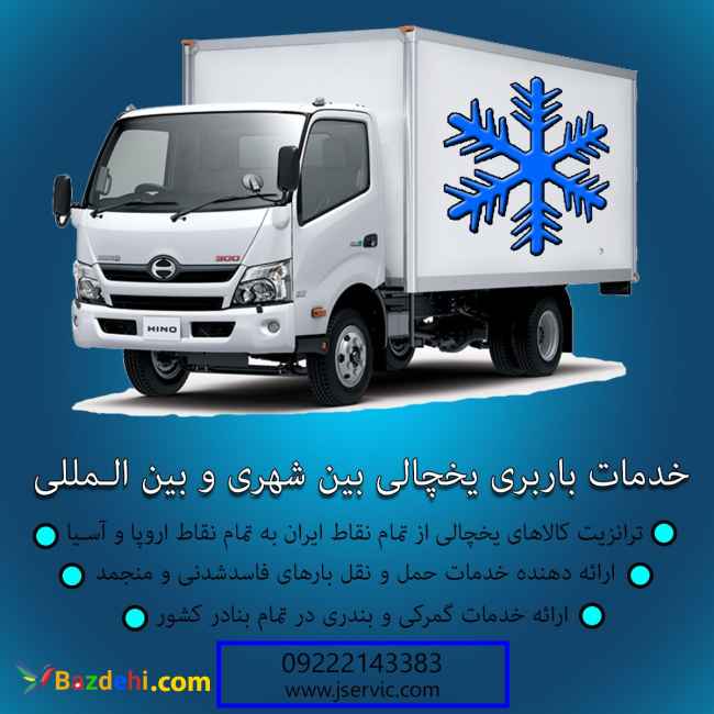 جی سرویس بزرگترین ناوگان حمل و نقل یخچالی در ایران تامین و اعزام انواع تریلی یخچالدار تامین و اعزام انواع کامیون و کامیونت یخچالدار تامین و اعزام انواع وانت یخچالدار به تمام نقاط و در اسرع وقت جهت سرویس دهی و انجام خدمات و حمل و نقل بار های یخچالی =-=-=-====-=-==-=-=-=-=-==-==-=-=-=-=-=-=-=-=-=-====-=-=-=-=-=-=-=- شهری _ بین شهری بصورت 24 ساعته -=-=-=-=-=-=-=-=-=-=-=-=-=- جهت هماهنگی و اطلاعات بیشتر به وب سایت جی سرویس مراجعه فرمایید . www.jservic.com -=-=-=-=-=-=-=-=-=-= پاسخ گویی 24 ساعته با شماره های زیر 09222143383 09141403383 -=-=-=-=-=-= با نصب اپلیکیشن جی سرویس با ده ها هزار نوع کامیون و کامیونت یخچالدار بصورت مستقیم و آنلاین با ما در ارتباط باشید