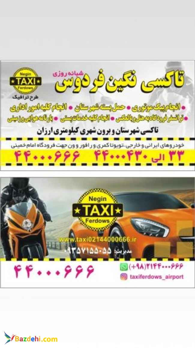 پیک موتوری نزدیک کاشانی پیک موتوری نزدیک فردوس پیک موتوری نزدیک آیت الله کاشانی تاکسی از هتل به شهرستان افزودن به پسندها تاکسی از هتل به شهرستان ? شماره های تماس 02144000430 02144000431 ? اطلاعات تماس با آگهی دهنده جعفری (143) ✔️شماره های تماس :: 02144000430 02144000431 توضیحات کامل آگهی تاکسی سرویس فردوس با مجوز رسمی و ربع قرن سابقه در مدیریت و اجرای سفرهای سیاحتی و زیارتی و درون شهری و برون شهری دارای چندین شعبه درتهران و سرتاسر ایران می باشد بهترین کادرمجرب با لباسهای فرم - تاکسی دراختیار-آماده عقد قرارداد جهت سرویس ارگانها ونهادها رزرو شبانه روزی -تاکسی فرودگاه امام خمینی ارزان شامل تویوتا کمری ،تویوتا رافور،ون،هایس،مینی بوس،اجاره اتوبوس -سرویس های درون شهری وبرون شهری و کیلومتری تاکسی دربستی،تاکسی دربست،تاکسی شهرستان دربستی،تاکسی دربست شهرستان،تاکسی دربستی بین شهری،تاکسی دربستی درون شهری،تاکسی دربست درون شهری، دربست، تاکسی فرودگاه امام خمینی - تاکسی فرودکاه امام خمینی -تویوتا کمری فرودگاه امام- تویوتا رافورفرودگاه امام -ون فرودگاه امام خمینی- رزرو ون فرودگاه امام خمینی -تاکسی شهرستان- رزروتاکسی شهرستان- تاکسی کیلومتری شهرستان -اجاره اتوبوس -تاکسی فرودگاه امام خمینی نزدیک-تاکسی دراختیار-تاکسی دربست—تاکسی دراختیار تهران-تاکسی دربست—تاکسی vip دراختیار-تاکسی دراختیار شهرستان-تاکسی دربست دراختیار-تاکسی دربستی شهرستان--تاکسی دربست شهرستان-تاکسی دراختیار-رزرو تاکسی دربست--رزرو تاکسی دربست شهرستان تویوتا کمری فرودگاه امام خمینی،تویوتا رافورفرودگاه امام،ون، –تاکسی فرودگاه امام واقع درتهران تاکسی رویال تویوتارافور رویال تویوتارافور سیروسفر تویوتاکمری رویال سفرتویوتاکمری شهرستان تاکسی وی آی پی دربستی تاکسی وی آی پی شهرستان سواری وی آی پی شهرستان سواری وی آی پی دربستی تاکسی وی آی پی بین شهری تاکسی رویال تاکسی رویال سفرتاکسی رویال تویوتارافور رویال سفرتویوتارافور سیروسفر تویوتاکمری رویال سفرتویوتاکمری تاکسی لوکس شهرستان شهرستان تاکسی وی آی پی دربستی تاکسی وی آی پی شهرستان تاکسی لوکس شهرستان تاکسی لوکسی بین شهری تاکسی لوکس برون شهری سواری لوکس شهرستان سواری لوکس بین شهری شهری تاکسی لوکس فرودگاه رزروتاکسی لوکس رزروتاکسی رویال سفررزروتاکسی رویال سفر رزروآنلاین تاکسی رویال سفررزروتاکسی پاکرو رزروتاکسی رویال سفر شهرستان رزروتاکسی رویال سفر فرودگاه امام خمینی رزروتاکسی پاکروشهرستان لوکس تاکسی پاکرو فرودگاه امام رزروتاکسی پاکرو شهرستان تاکسی پاکرودراختیار تاکسی پاکرو برون شهری تاکسی پاکرو بین شهری رزروتاکسی پاکروشهرستان دراختیار رزروتاکسی پاکرو رزروتاکسی سیروسفر رزروتاکسی سیروسفرشهرستان رزروتاکسی سیروسفرفرودگاه امام خمینی رزروتاکسی سیروسفربرون شهری رزروتاکسی سیروسفربین شهری رزروتاکسی دربستی سیروسفررزروتاکسی همسفرشهرستان رزروتاکسی همسفردربستی رزروتاکسی همسفربرون شهری رزروتاکسی همسفر بین شهری رزروتاکسی همسفر فرودگاه امام رزروتاکسی همسفردراختیار تاکسی vipرزروسواری وی آی پی شهرستان رزروسواری وی آی پی بین شهری رزروسواری وی آی پی دربستی رزروسواری وی آی پی برون شهری رزروسواری وی آی پی دراختیار تاکسی وی آی پی شهری رزروون فرودگاه امام رزرو ون فرودگاه امام رزروتاکسی فرودگاه امام رزروتاکسی ارزان فرودگاه امام رزرو تاکسی vip فرودگاه امام رزرو ون شهرستان رزرو ون دربستی بین شهری رزرو سوتا شهرستان رزرو کمری شهرستان رزروسوناتا دراختیار سوناتا شهرستان سوناتا دربستی سوناتا بین شهری سوناتا بین شهری رزروتویوتارافور شهرستان تویوتارافورشهرستان رزروتویوتاکمری بین شهری رزرو تویوتاکمری بروشهری رزروتویوتاکمری دربستی رزرو سوناتابرون شهری رزروتویوتارافور بین شهری رزروتویوتا رافور دربستی رزروتویوتارافورشهری رزروتویوتارافور شهرستان تویوتارافور دربستی تویوتارافور درب