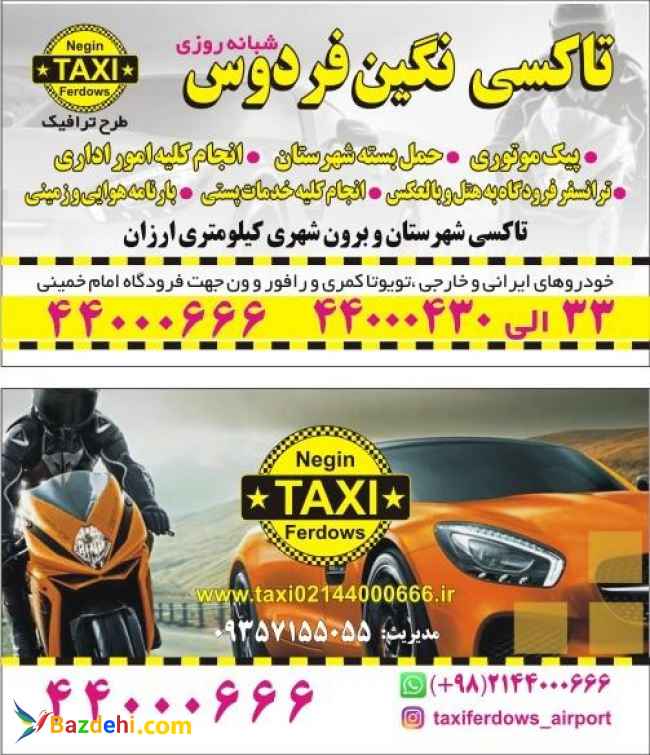 تاکسی از هتل به شهرستان افزودن به پسندها تاکسی از هتل به شهرستان ? شماره های تماس 02144000430 02144000431 ? اطلاعات تماس با آگهی دهنده جعفری ✔️شماره های تماس :: 02144000430 02144000431 توضیحات کامل آگهی تاکسی سرویس فردوس با مجوز رسمی و ربع قرن سابقه در مدیریت و اجرای سفرهای سیاحتی و زیارتی و درون شهری و برون شهری دارای چندین شعبه درتهران و سرتاسر ایران می باشد بهترین کادرمجرب با لباسهای فرم - تاکسی دراختیار-آماده عقد قرارداد جهت سرویس ارگانها ونهادها رزرو شبانه روزی -تاکسی فرودگاه امام خمینی ارزان شامل تویوتا کمری ،تویوتا رافور،ون،هایس،مینی بوس،اجاره اتوبوس -سرویس های درون شهری وبرون شهری و کیلومتری تاکسی دربستی،تاکسی دربست،تاکسی شهرستان دربستی،تاکسی دربست شهرستان،تاکسی دربستی بین شهری،تاکسی دربستی درون شهری،تاکسی دربست درون شهری، دربست، تاکسی فرودگاه امام خمینی - تاکسی فرودکاه امام خمینی -تویوتا کمری فرودگاه امام- تویوتا رافورفرودگاه امام -ون فرودگاه امام خمینی- رزرو ون فرودگاه امام خمینی -تاکسی شهرستان- رزروتاکسی شهرستان- تاکسی کیلومتری شهرستان -اجاره اتوبوس -تاکسی فرودگاه امام خمینی نزدیک-تاکسی دراختیار-تاکسی دربست—تاکسی دراختیار تهران-تاکسی دربست—تاکسی vip دراختیار-تاکسی دراختیار شهرستان-تاکسی دربست دراختیار-تاکسی دربستی شهرستان--تاکسی دربست شهرستان-تاکسی دراختیار-رزرو تاکسی دربست--رزرو تاکسی دربست شهرستان تویوتا کمری فرودگاه امام خمینی،تویوتا رافورفرودگاه امام،ون، –تاکسی فرودگاه امام واقع درتهران تاکسی رویال تویوتارافور رویال تویوتارافور سیروسفر تویوتاکمری رویال سفرتویوتاکمری شهرستان تاکسی وی آی پی دربستی تاکسی وی آی پی شهرستان سواری وی آی پی شهرستان سواری وی آی پی دربستی تاکسی وی آی پی بین شهری تاکسی رویال تاکسی رویال سفرتاکسی رویال تویوتارافور رویال سفرتویوتارافور سیروسفر تویوتاکمری رویال سفرتویوتاکمری تاکسی لوکس شهرستان شهرستان تاکسی وی آی پی دربستی تاکسی وی آی پی شهرستان تاکسی لوکس شهرستان تاکسی لوکسی بین شهری تاکسی لوکس برون شهری سواری لوکس شهرستان سواری لوکس بین شهری شهری تاکسی لوکس فرودگاه رزروتاکسی لوکس رزروتاکسی رویال سفررزروتاکسی رویال سفر رزروآنلاین تاکسی رویال سفررزروتاکسی پاکرو رزروتاکسی رویال سفر شهرستان رزروتاکسی رویال سفر فرودگاه امام خمینی رزروتاکسی پاکروشهرستان لوکس تاکسی پاکرو فرودگاه امام رزروتاکسی پاکرو شهرستان تاکسی پاکرودراختیار تاکسی پاکرو برون شهری تاکسی پاکرو بین شهری رزروتاکسی پاکروشهرستان دراختیار رزروتاکسی پاکرو رزروتاکسی سیروسفر رزروتاکسی سیروسفرشهرستان رزروتاکسی سیروسفرفرودگاه امام خمینی رزروتاکسی سیروسفربرون شهری رزروتاکسی سیروسفربین شهری رزروتاکسی دربستی سیروسفررزروتاکسی همسفرشهرستان رزروتاکسی همسفردربستی رزروتاکسی همسفربرون شهری رزروتاکسی همسفر بین شهری رزروتاکسی همسفر فرودگاه امام رزروتاکسی همسفردراختیار تاکسی vipرزروسواری وی آی پی شهرستان رزروسواری وی آی پی بین شهری رزروسواری وی آی پی دربستی رزروسواری وی آی پی برون شهری رزروسواری وی آی پی دراختیار تاکسی وی آی پی شهری رزروون فرودگاه امام رزرو ون فرودگاه امام رزروتاکسی فرودگاه امام رزروتاکسی ارزان فرودگاه امام رزرو تاکسی vip فرودگاه امام رزرو ون شهرستان رزرو ون دربستی بین شهری رزرو سوتا شهرستان رزرو کمری شهرستان رزروسوناتا دراختیار سوناتا شهرستان سوناتا دربستی سوناتا بین شهری سوناتا بین شهری رزروتویوتارافور شهرستان تویوتارافورشهرستان رزروتویوتاکمری بین شهری رزرو تویوتاکمری بروشهری رزروتویوتاکمری دربستی رزرو سوناتابرون شهری رزروتویوتارافور بین شهری رزروتویوتا رافور دربستی رزروتویوتارافورشهری رزروتویوتارافور شهرستان تویوتارافور دربستی تویوتارافور دربست تویوتاروفور شهرستان رزرو تویوتاra4 تویوتاra4شهرستان رزروتویوتاra4 دربستی تویوتاra4د