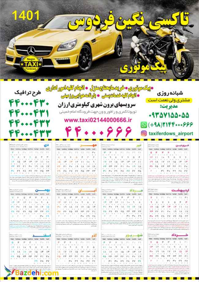 پیک موتوری بر حسب یک ضرورت اجتماعی و نیاز جامعه به خدمات حمل ونقل خرده بار شهری ،سریع و تحویل فوری و موجب صرفه جویی قابل توجهی در وقت و منابع مشتریان و سوخت و غیره شده است و ابزارموثری در مدیریت ترافیك شهری میشود. محدوده سرویس دهی پیک موتوری فردوس و نگین فردوس: کاشانی،صادقیه، بلوار فردوس شرق ،بلوار فردوس غرب ، جنت آبادجنوبی ،آیت الله کاشانی، مهران،بهنام ،ابوذر،اباذر،شهرزیبا ، تعاون ، باغ فیض و کلیه مناطق تهران در اسرع وقت،تاکسی سرویس جنت آباد ، تاکسی جنت آباد ،تاکسی تلفنی جنت آباد،پیک موتوری جنت آباد،پیک موتوری فردوس،اطلاعات پرواز فرودگاه امام خمینی،اطلاعات پرواز فرودگاه مهرآباد، اطلاعات پرواز cip تاکسی فرودگاه مهرآباد،تاکسی سرویس نزدیک فرودگاه مهرآباد،تاکسی دربست از فرودگاه مهرآباد به شهرستان،تاکسی دربستی از فرودگاه مهرآباد به شهرستان،تاکسی دربستی از فرودگاه امام خمینی به شهرستان،تاکسی دربست فرودگاه،پیک موتوری نزدیک فرودگاه امام خمینی،پیک موتوری نزدیک فرودگاه امام خمینی،پیک موتوری از فرودگاه امام خمینی به تهران،پیک موتوری از فرودگاه مهرآباد به کلیه نقاط تهران و شهرستان،انجام کلیه خدمات حمل بار از فرودگاه ها،تاکسی دربستی از ترمینال غرب به شهرستان،تاکسی سرویس نزدیک ترمینال مسافربری غرب ،تاکسی سرویس نزدیک ترمینال آزادی پیک موتوری نزدیک بلوار فردوس،پیک موتوری فردوس،پیک موتوری بلوار فردوس شرق،پیک موتوری نزدیک آیت الله کاشانی،پیک موتوری نزدیک صادفیه،پیک موتوری نزدیک آریاشهر،پیک موتوری نزدیک ستاری،پیک موتوری غرب تهران،بهترین پیک موتوری غرب تهران،بهترین پیک موتوری بلوار فردوس،بهترین پیک موتوری فردوس،پیکموتوری شبانه روزی،سواری دربست---تاکسی دربست---تاکسی شهرستان ترانسفر،ترانسفر فرودگاه امام خمینی،ترانسفر فرودگاه مهرآباد،ترانسفر،پیک آپ فرودگاهی،ترانسفر ارزان،ترانسفر نزدیک فرودگاه مهرآباد،تاکسی سرویس نزدیک فرودگاه امام خمینی،تاکسی سرویس نزدیک فرودگاه مهرآباد شماره های تماس : 46013758-46013762-44431400-44487602-44487662-44487692-44487617-44487598-44487765-44436609-44441302-44026843 -44026895-44026897-44044919-44015966-44000430-44000431-44000432-44000433-44000666 استخدام راننده با خودرو درآمد نه میلیون. استخدام راننده با خودرو درآمد عالی. راننده با خودرو استخدام میشود. راننده با خودرو. درآمد عالی. استخدام راننده آژانس. سرویس مدرسه. راننده جهت سرویس مدرسه. راننده جهت سرویس ادارات. پیک موتوری با موتور، استخدام راننده خانم و آقا با خودرو درآمد نه میلیون، استخدام راننده درآمد نه میلیون به بالا، راننده آژانس، راننده خانم جهت آژانس . اشتغال زایی راننده. اشتغال راننده با خودرو. شغل مناسب با ما در ارتباط باشید www.taxi02144000666.ir