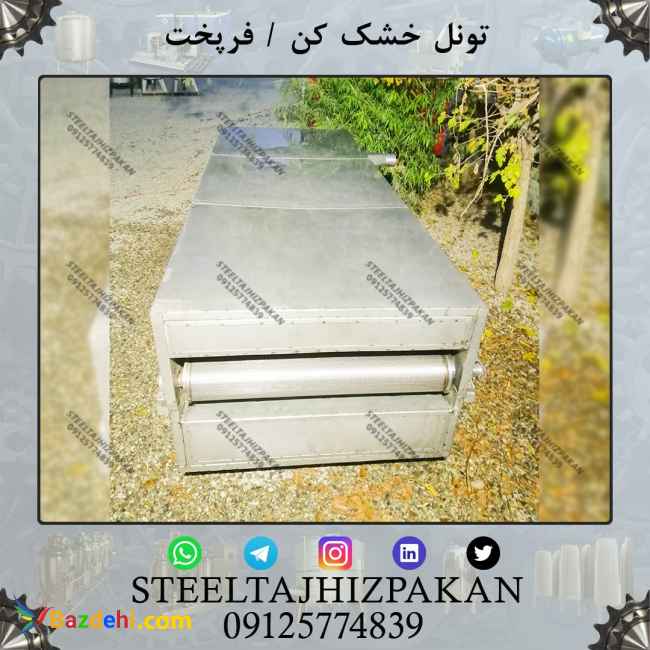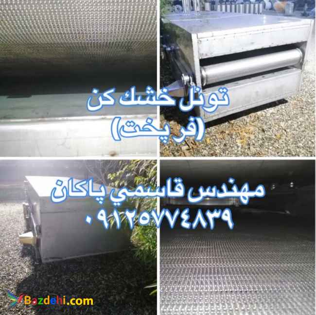 تونل خشک کن یا فر پخت(اتوماتیک/پیوسته/کانتینیوس) توضیح: ایجاد حرارت توسط مشعل و فن از طریق انتقال هوای گرم در کانال بالا و پایین نوار نقاله به صورت مجزا و قابل کنترل موارد مصرف : صنایع غذایی و دارویی و معدنی نظیر : ناگت,نان,میوه خشک,سبزی،آجیل,خشکبار,کیک و بیسکوییت و پودر قرص و ... مشخصات دستگاه: ابعاد : طول دستگاه 450 cm عرض دستگاه 170 cm ابعاد نوار نقاله 140*450 cm جنس : 99% دستگاه تمام استیل 304 حتی شاسی و پیچ ها,نوار نقاله بافت استیل برند فلکسون آلمان وزن : 2100 kg وضعیت : کاملا آکبند و پلمپ کسری دستگاه در حال حاظر : موتور گیربکس,فن و مشعل,تابلو برق مهندس قاسمی پاکان 09125774839 (بنگاه مخازن و ماشین آلات استیل قاسمی پاکان)(استیل تجهیز پاکان) (((مخازن استیل تجهیزات و ماشین آلات استیل لبنی نوشیدنی غذایی دارویی آرایشی بهداشتی شیمیایی جهت بازدید موجود میباشد)))