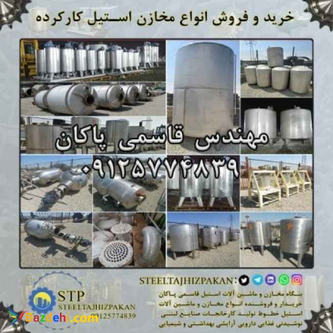 خریدار و فروشنده انواع مخزن استیل کارکرده و تجهیزات استیل کارکرده و ماشین آلات استیل کارکرده شامل :