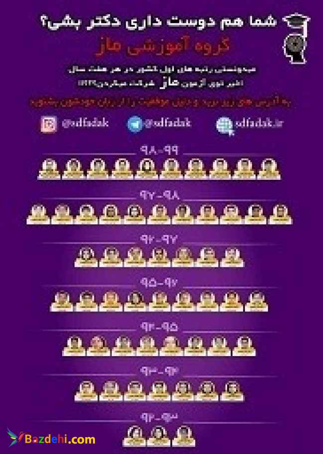 اگه شما هم دوست داری دکتر بشی حتما این متن رو بخون به نام خدای مهربون و دوست داشتنی خالق تمام هستی خالق من و شما دوست عزیزم سلام؛ همراهانم : سرای دانش فدک ، خانواده ی شما و علی الخصوص خودتون هر سه ی ما یک هدف مشترک داریم و اون چیزی نیست جز کسب یه رتبه ی عالی در حد تک رقمی یا دو رقمی شادی ، شادابی و نشاط گمشده دیرینه بشر است نیازی که بشر هزینه کلانی برای تامین آن پرداخته و خواهد پرداخت یکی از ابزارهای شاد زیستن، تجربه موفقیت است. این موفقیت هر چه بزرگتر، اثرسازتر و جاودان تر باشد نشاط آفرینی آن بیشتر خواهد بود. موفقیت در کنکور هم میتونه باشه برای موفقیت در کنکور فقط به یک کانون تصمیم گیری اعتماد کنید(آشپز که دوتا بشه غذا یا شور میشه یا بی نمک) ما ابزارهای مورد نیاز رو تحت عنوان مثلث طلایی (آموزش ، مشاوره ،آزمون) براتون فراهم کردیم جزئیات طرح از صفر تا صد رو ترجیح میدم بصورت حضوری یا تلفنی در موردش صحبت کنیم پشتوانه ی اجرای این طرح تجربه ی ۱۹ ساله و تعهدی هست که بصورت محضری به شما میدیم تا بتونید رتبه ی مورد نیاز جهت ورود به رشته و دانشگاه مورد نظرتون رو بدست بیارید این طرح بصورت vip انفرادی یا گروهای ۲ و ۳ نفره اجرا میشه ارادتمند شما نادر شفاعی مدیر عامل سرای دانش فدک مسئول نمایندگی گروه آموزشی ماز در تهران جهت دریافت اطلاعات بیشتر با روابط عمومی موسسه ۷۲۲۴۹-۰۲۱ تماس بگیرید و یا کلمه تضمین را به سامانه ۵۰۰۰۴۸۸۴ پیامک کنید 09120194109 02172249 02177182723 ایمیل این آدرس ایمیل توسط spambots حفاظت می شود. برای دیدن شما نیاز به جاوا اسکریپت دارید سایت https://sdfadak.ir https://shop.sdfadak.ir تهران میدان رسالت خیابان نیروی دریایی کوچه شهید احمدی پلاک 9 تلگرام اینستاگرام @sdfadak مشاور کنکور نادر شفاعی قبولی پزشکی تضمین قبولی پزشکی کلاس آزمون آزمون آنلاین هدایت تحصیلی برنامه ریزی تحصیلی مشاوره تحصیلی استاد نادر شفاعی مشاوره تخصصی تحصیلی انتخاب رشته کنکور برنامه ریزی کنکور برنامه ریزی درسی دبیرستان هدایت تحصیلی دبیرستان ارتقا معدل طرح ارتقا معدل کنکور سراسری برگزاری دوره های آنلاین کلاس آنلاین نکته و تست تست کنکور ثبت نام کلاس های آنلاین بهترین آزمون بهترین کلاس کنکور تست تخصصی کنکور آزمون آنلاین تجربی آزمون آنلاین ریاضی آزمون آنلاین انسانی تست ریاضی آنلاین سوالات کنکور آزمون آنلاین ماز مشاوره کنکور سراسری ۱۴۰۰ کنکور سراسری تجربی کنکور سراسری ریاضی کنکور سراسری انسانی کنکور سراسری هنر کنکور سراسری زبان طرح حکمت حکمت کارت طرح باقرالعلوم خرید کتاب طرح حکمت طرح حکمت کلاس زبان درگاه ثبت نام طرح یاوران امید طرح حکمت چیست بهترین آموزشگاه کنکور کشور بهترین کلاس کنکور تهران نی نی سایت هزینه کلاس کنکور تجربی کلاس کنکور آنلاین بهترین موسسه کنکور ریاضی موسسات برتر کنکور موسسات برتر کنکور تهران موسسات معتبر کنکور کدام موسسه برای کنکور بهتر است بهترین موسسه آموزشی کنکور اسامی موسسه های آموزشی کنکور موسسه تضمینی کنکور بهترین آموزشگاه کنکور کشور کلاس کنکور بانک سوالات کنکور دانلود سوالات عمومی کنکور تست کنکور تست کنکور تجربی نظام جدید تست کنکور آنلاین تست کنکور انسانی دانلود سوالات عربی کنکور 10 سال اخیر دانلود سوالات ریاضی کنکور 10 سال اخیر بخشنامه ترمیم معدل ترمیم معدل برای نظام جدید ترمیم معدل کارشناسی هزینه ترمیم معدل سامانه ثبت نام ترمیم معدل ترمیم معدل برای مهاجرت ترمیم معدل نظام قدیم برای کنکور 99 سایت آموزش و پرورش ترمیم معدل انتخاب رشته کنکور ۹۹ انتخاب رشته تجربی اعلام نتایج انتخاب رشته کنکور 98 نحوه انتخاب رشته کنکور انتخاب رشته سازمان سنجش انتخاب رشته مجازی انتخاب رشته انسانی مشاوره تحصیلی کنکور مشاور تحصیلی تلفنی مشاوره تحصیلی دبیرستان خدمات مشاوره تحصیلی مشاوره تحصیلی چیست مشاوره تحصیلی انتخاب رشته آدرس مراکز مشاوره تحصیلی در تهران قبولی تضمینی پزشکی ۹۹ قبولی صددرصد در پزشکی پکیج تضمینی کنکور پزشکی موسسه خوا
