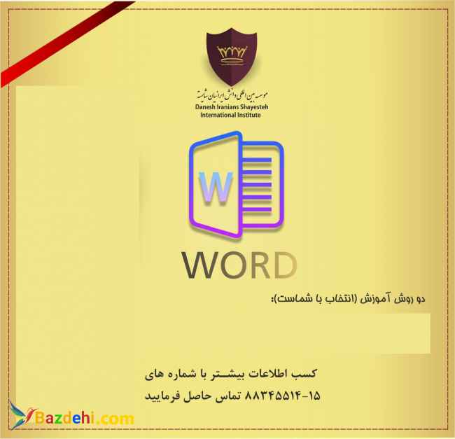 Word نرمافزار «مایکروسافت ورد» (Microsoft Word) فراتر از آن ابزاری است که اکثر مردم تصور میکنند، به گونهای که بسیاری از ویژگیهای آن حتی توسط خیلی از کاربران مورد استفاده قرار نمیگیرد. در این بسته میتوانید تمامی گزینه های ورد را یاد بگیرید و از ان استفاده نمایید مانند ثابت کردن فونتها-شماره گذاری-فهرست نویسی و... جهت دریافت بسته اموزشی با شماره های ذیل تماس حاصل نمایید موسسه بین المللی دانش ایرانیان شایسته 88345514 88345515