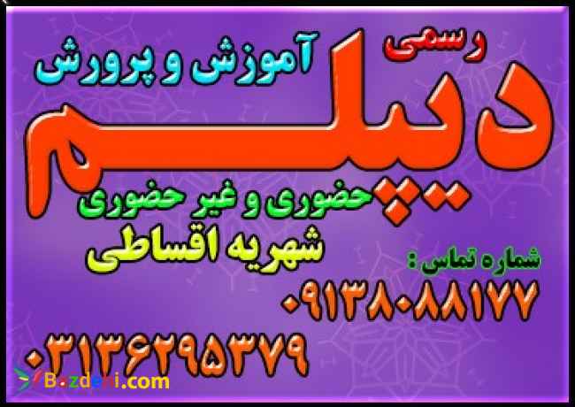دیپلم رسمی و قانونی آموزش و پرورش بگیرید. از سیکل تا دیپلم ردیها با کمترین زمان و حداقل هزینه در رشته های فنی و هنری موردتائید آموزش وپرورش ویژه دانش آموزانی که سالها از درس فاصله گرفته اند و عموم مردم به دنبال روشهای غیرقانونی نباشید! کلاسها حضوری ، مجازی و به صورت آنلاین طرح شاغلین و خانم های خانه دار آزمون : سوالات آزمون نهایی در اختیا هنرجویان قرار میگیرد . آدرس : اصفهان - خیابان حکیم نظامی – نبش کوچه شاداب - پلاک 735 ثبت نام غیر حضوری از طریق واتساپ یا پیام رسان گپ با شماره 09138088177 امکان پذیر میباشد ... جهت مشاوره و اطلاعات بیشتر با شماره های زیر تماس فرمایید :09138088177 – 03136295379 مدارک مورد نیازجهت ثبت نام: 1- اصل شناسنامه 2- اصل کارت ملی 3- 1 قطعه عکس 4*3 4- مبلغ بیعانه تماس و ثبت نام و مشاوره فقط در شهر اصفهان و استان اصفهان https://www.instagram.com/diplom.1401/