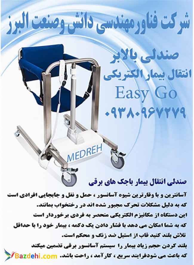 دستگاه بالابر آسانترین و بهترین شیوه انتقال، حمل و نقل و جابجایی مجدد افرادی است که به دلیل مشکلات تحرک مجبور شده اند در رختخواب بمانند . این دستگاه از مکانیزم الکتریکی منحصر به فردی برخوردار است که به شما امکان می دهد با فشار دادن یک دکمه ، بیمار خود را با حداقل تلاش بلند کنید . سیستم انتقال بیمار برقی باعث می شود فرآیند سریع ، کارآمد و راحت انجام شود . همچنین به شما این امکان را می دهد به لطف طراحی انعطاف پذیر خود ، به راحتی و با اطمینان به صندلی توالت برسید وکمک به انتقال بیمار به ماشین دستگاه بالابر ، تاشو بوده و به آسانی قابل تفکیک و جداسازی بوده و شما میتوانید آن را در هر صندوق عقب وسیله نقلیه قرار دهید. id تلگرام:https://t.me/khosro_chatranbarin برای کسب اطلاعات بیشتر با شماره های زیر تماس حاصل فرمایید. همراه:09380967279 instagram.com /medreh.co http://WWW.Medreh.com http://WWW.Medreh.com شماره تماس:02833663010 این آدرس ایمیل توسط spambots حفاظت می شود. برای دیدن شما نیاز به جاوا اسکریپت دارید ایمیل http://WWW. Medreh.ir