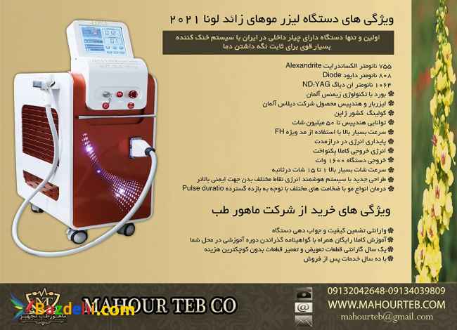 *** مشاوره و تجهیز فقط به صورت حضوری در محل شرکت ماهور طب انجام می شود. *** دستگاه لونا لیزر جدیدترین و قوی ترین دستگاه رفع موهای زاید می باشد که با بهره گیری از لیزر بار آلمانی و تابش سه طول موج دایود و الکس و ان دی یگ توانسته رضایت بسیار بالای پزشکان حرفه ای را بدست آورد و با برخورداری از ویژگی های منحصر به فرد مورد توجه کلینیک های زیبایی و پزشکان قرار گرفته است. دستگاه لیزر LONA توانایی زدن شات بسیار بالایی را دارد و مهم ترین مزیت آن بدون درد بودن دستگاه می باشد. به هنگام استفاده از این دستگاه، بیمار هیچ گونه احساس آزردگی و ناراحتی حین لیزر موهای زائد نخواهد داشت. دستگاه لیزر لونا کولینگ بسیار قدرتمندی دارد و تنها دستگاهی در بازار ایران هست که مجهز به چیلر داخلی می باشد و در کل مدت فول بادی سر هندپیس خنک باقی می ماند. ویژگی های دستگاه لیزر لونا: دستگاه لیزر لونا اولین و تنها دستگاه دارای چیلر داخلی در ایران با سیستم خنک کننده بسیار قوی برای ثابت نگه داشتن دما » 755 نانومتر الکساندرایت Alexandrite » 808 نانومتر دایود Diode » 1064 نانومتر اِن دی یگ ND:YAG » مجهز به 4 پاور قدرتمند » بورد با تکنولوژی زیمنس آلمان » لیزربار و هندپیس محصول شرکت دیلاس آلمان » کولینگ کشور ژاپن » توانایی هندپیس تا 50 میلیون شات » پایداری انرژی در درازمدت » خروجی دستگاه 1600 وات » سرعت شات بسیار بالا 1 تا 15 شات درثانیه » دارای کولینگ بی نظیر و کاملا بدون درد ویژگی های خرید از شرکت ماهور طب: ∗ وارانتی تضمین کیفیت و جوابدهی دستگاه ∗ آموزش کاملا رایگان همراه با گواهینامه گذراندن دوره آموزشی در محل شما ∗ یکسال گارانتی قطعات، تعویض و تعمیر قطعات بدون کوچکترین هزینه ∗ با ده سال خدمات پس از فروش ∗ ارسال به سراسر کشور برای دریافت مشاوره رایگان در مورد دستگاه ها و تجهیزات پزشکی و زیبایی با ما تماس بگیرید: مشاور فروش : 09132042648 *** مشاوره و تجهیز فقط به صورت حضوری در محل شرکت ماهور طب انجام می شود. *** توجه : شرکت ماهور طب هیچ گونه فروش اینترنتی ندارد!!!