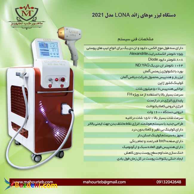 *** مشاوره و تجهیز فقط به صورت حضوری در محل شرکت ماهور طب انجام می شود. *** دستگاه لیزر پلاتینیوم دارای سه طول موج 755 نانومتری با عنوان الکساندرایت، طول موج 808 نانومتری دایود و طول موج 1064 نانومتری اندیاگ، کامل ترین دستگاه لیزر موی زائد موجود در بازار است که می تواند برای تمامی 6 حالت تایپ پوستی درمان رفع موهای زائد را با بهترین پاسخگویی انجام دهد. این دستگاه لیزر برای انواع مو (کرکی تا ضخیم) و انواع رنگدانههای پوستی (روشن تا تیره) مناسب است. ویژگی های دستگاه لیزر پلاتینیوم لونا دستگاه لیزر پلاتینیوم لونا محصول شرکت ماهور طب یک دستگاه لیزر فوق العاده عالی برای از بین بردن موهای زائد مراجعین می باشد که برای ایجاد بهترین نتایج در همه تایپ های پوستی تولید شده است. بکارگیری لیزربار قدرتمند آلمانی مجهز به چهار پاور قدرتمند برد دستگاه ساخت شرکت زیمنس آلمان استفاده از پیشرفته ترین و با کیفیت ترین قطعات کولینگ بسیار قوی و قدرتمند هندپیس دستگاه لونا با تکنولوژی منحصر به فرد بنابراین با خرید دستگاه لیزر پلاتینیوم لونا می توانید درمانی ایمن و بدون درد را برای مراجعه کنندگان خود فراهم نمایید. خرید دستگاه لیزر پلاتینیوم لونا خرید دستگاه پلاتینیوم لونا با توجه به نتایج درمانی فوق العاده، هزینه های جانبی کم و همچنین قیمت مناسب آن انتخاب فوق العاده هوشمندانه ای برای تجهیز مراکز زیبایی، کلینیک ها و مطب ها در زمینه لیزر موهای زائد می باشد. شرکت های فراوانی در حوزه تجهیزات پزشکی و زیبایی وجود دارند و محصولات متنوعی در زمینه لیزر و زیبایی ارائه می دهند. شرکت ماهور طب از جمله شرکت های معتبر دارای مجوز رسمی است که بیش از 13 سال است در زمینه تولید و واردات دستگاه های لیزر و زیبایی فعالیت می کند. دستگاه لیزر لونا دارای تکنولوژی پیشرفته محصول شرکت ماهور طب است که برای رفع دائمی موهای زائد تولید و روانه بازار شده است. این دستگاه لیزر فرایند درمان موثر، سریع و بدون دردی را برای مراجعین فراهم می کند. ماهور طب مفتخر است که در دستگاه لونا لیزر با ارائه پلت فرم دارای نسخه های مشابه محدود جهانی یعنی تکنولوژی سه طول موج الکس دایود اندیاگ گامی فراتر از تکنولوژی های مطرح و بروز در عرصه تجهیزات لیزر و زیبایی برداشته است. دستگاه لونا ترکیبی از لیزرهای الکس، دایود و ان دیاگ در یک هندپیس است که نوآوری در عرصه رفع موهای زائد محسوب می شود. برای خرید دستگاه لیزر پلاتینیوم لونا و اطلاع از قیمت آن می توانید با مشاوران ماهور طب تماس حاصل فرمایید. آدرس سایت : www.mahourteb.com مشاور ماهور طب : 09132042648 *** مشاوره و تجهیز فقط به صورت حضوری در محل شرکت ماهور طب انجام می شود. *** توجه : شرکت ماهور طب هیچ گونه فروش اینترنتی ندارد!!!