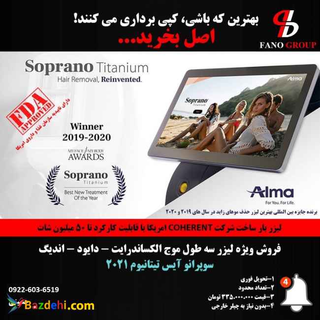 فروش ویژه لیزر سه طول موج سوپرانو آیس تیتانیوم 2021