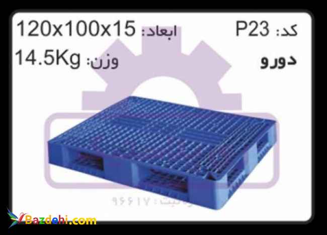 پالت های پلاستیکی P23 کد محصول: p23 نوع کالا: پالت پلاستیکی مشبک ابعاد داخلی: ابعاد خارجی: 15*100*120 وزن: 14.5 kg مقدار تحمل بار:ثابت 2500kg/ متحرک 600kg نوع مواد: موارد استفاده: کارخانه ها ، کارگاه ها و پر کردن کف انبار ویژگی های محصول: قابلیت استفاده از دو روی پالت نام های دیگر محصول: پالت لیفتراک خور، پالت 15 کیلویی، پالت دو رو رنگ های متعارف: تعداد جایگیری در کانتینر:400 این پالت پلاستیکی با ابعاد 15*100*120 و وزن kg 14.5 با سطح مشبکی که دارد برای پر کردن کف انبار، کارگاه ها و کارخانه جات تولیدی مناسب می باشد. نام دیگر این پالت لیفتراک خور است( جابه جایی این پالت پلاستیکی فقط با استفاده از لیفتراک انجام میشود).از ویژگی های دیگر این پالت پلاستیکی قابلیت استفاده از دو روی پالت را میتوان اشاره کرد؛استقامت این پالت به صورت ثابت 2500 kg و در حالت جابه جایی 600 kg میباشد و تعداد جایگیری در یک کانتینر 400 عدد می باشد.