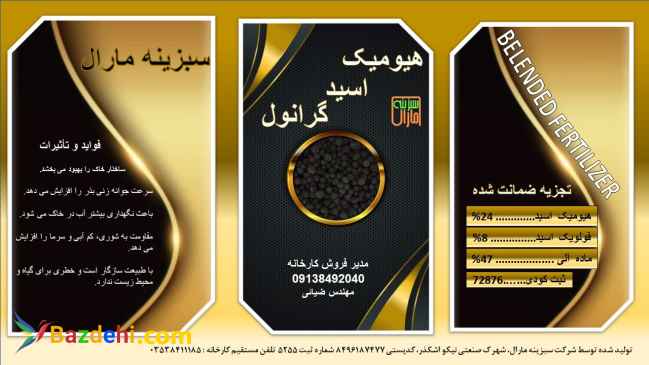 کارخانجات #سبزینه_مارال تولید کننده انواع #کود_شیمیایی_ارگانیک #هیومیک_اسید_گرانول به رشد سریع باکتری های مفید در خاک کمک میکند. - به انحلال و آزادسازی عناصر #میکرو و #ماکرو کمک کرده - مقاومت به شوری ، کم آبی و سرما مقاومت گیاه را در مقابل انواع بیماری ها افزایش داده این #کود تولید شرکت سبزینه مارال و دارای #ثبت_کودی هست به دلیل داشتن معدن اختصاصی #لئوناردیت مقرون به صرفه ارسال به سراسر کشور خرید مستقیم از کارخانه و بدون واسطه مدیر فروش کارخانه 09138492040 مهندس ضیائی