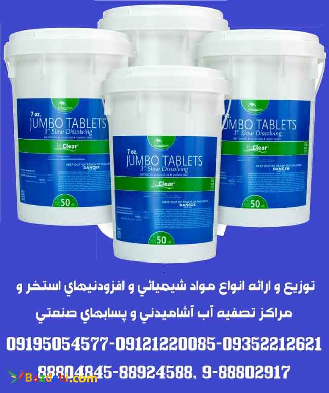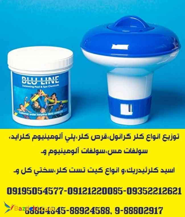 قابل توجه استخرهای باشگاهی و خانگی و مراکز تصفیه آب و پسابهای آشامیدنی و صنعتی توزیع و ارائه مواد اولیه و افزودنیهای تصفیه آب و پسابهای صنعتی،استخرهای خانگی و باشگاهی و مخازن آب شامل انواع:کلر گرانول،قرص کلر،پلی آلومینیوم کلراید(پک)سولفات مس(کات کبود)،سولفات آهن(زاج سبز) سولفات آلومینیوم(زاج سفید)،اسید کلرئیدریک37%،انواع آنتی اسکلانت(رسوبزدای اسیدی-دی اسکلر)، ماسه سیلیسی دانه بندی شده،ماسه گلاس،کربن اکتیو،انواع زئولیت پودری و گرانول،آنتی فوم(ضد کف)، سود مایع،سدیم متا بی سولفیت،آب ژاول،هیدرازین،آهک هیدراته،کلرور فریک و... توزیع و ارائه کیت تست کلر و پی اچ،کیت تست سختی کل آب،کیت تست اکسیژن،کیت تست آمونیاک و... 09195054577-09121220085-09352212621-09353903060 88804845-88924588-88802917, 18