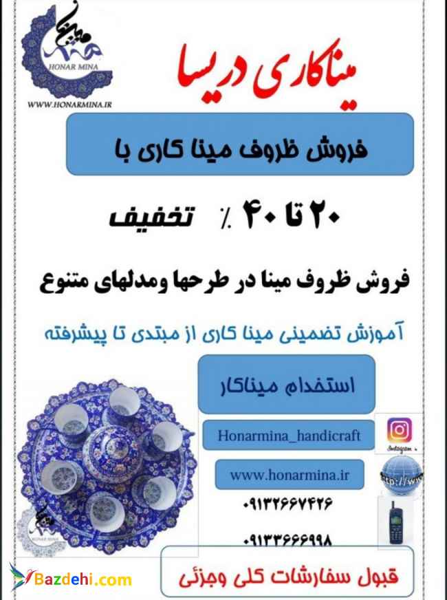 فروش ظروف میناکاری در رنگ ها و مدل های مختلف،آموزش میناکاری و استخدام میناکار