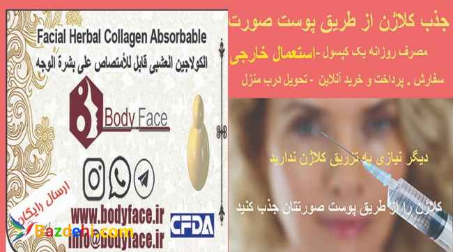 فروشگاه بادی فیس ( منطقه آزاد اروند ) وارد کننده مستقیم باکیفیت ترین محصولات مراقبتهای پوستی و 100 % گیاهی فروش مستقیم انواع کپسولهای : کلاژن جذبی ازطریق پوست صورت , خون رسان جذبی و قوی صورت , آنزیم مخصوص رفع تیرگی و پف زیر چشم , کپسول ویژه ضد چین و چروک صورت , کپسول ضد افتادگی صورت . با توجه به اینکه فروشگاه بادی فیس در منطقه آزاد تجاری اروند مستقر میباشد لذا قیمتهای ما بسیار مناسبتر از داخل کشور میباشد . ارسال رایگان در اسرع وقت طریقه مصرف – استعمال خارجی ( غیر خوراکی ) : قبل از خواب صورت خود را با آب ولرم و صابون شسته و خشک نمایید , یک سوراخ کوچک در کپسول ایجاد کرده و مقداری از محلول داخل کپسول را بر مناطق موردنظر قرار داده و به مدت 2- 5 دقیقه ماساژ دهید , جهت سفارش لطفا با شماره تلفنهای مستقیم ذیل تماس حاصل فرمایید : 53505157 – 061 و 53515058 -061 همراه : 09166318720