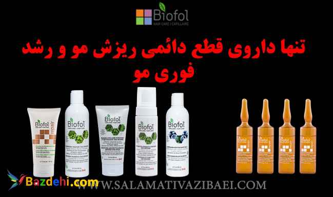 درمان قطعی و فوری انواع الگو های ریزش مو (درمان ریزش مو+رشد مجدد مو+درمان نازکی و ضخیم کننده تارهای نازک مو+افزایش سرعت رشد مو) مشاوره: 02122133354 02122133364 02122133374 09128384801 09128384802 یک روش درمانی موثر برای افرادی که می خواهند موهایشان سریع رشد کند محصولات درمانی ضد ریزش و رشد مجدد مو بایوفل کانادا اثردهی تنها از یک هفته بعد از شروع استفاده کمپانی بایوفل کانادا تنها کمپانی معتبر در جهان است که فقط توجه خود را به محصولات درمانی مو سر معطوف ساخته است. پکیج ضد ریزش و رشد مجدد مو بایوفل از ریزش مو جلوگیری کرده، موهای آسیب دیده را ترمیم کرده منجر به رشد مجدد مو می شود همزمان با آن ساقه مو را نیز تقویت کرده به آن درخشش، لطافت و استحکام لازم را می بخشد. ضد ریزش و ضد پیری مو رشد مجدد مو اثردهی از هفته اول ترمیم طاسی، ریزش، کم پشتی در اثر عامل وراثت استحکام و افزایش ضخامت کوتیکول (ساقه) مو جلوگیری از شوره سر کراتینه مو احیا و استحکام موهای رنگ شده تقویت فولیکول اینستاگرام: @salamativazibaie سایت فروشگاهی: www.salamativazibaei.com ساعات تماس: شنبه الی چهارشنبه 9:30 الی 17