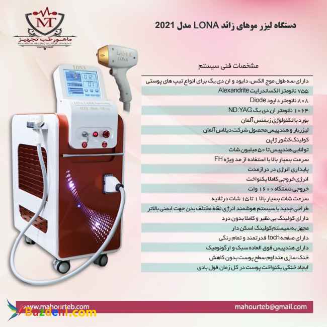 *** مشاوره و تجهیز فقط به صورت حضوری در محل شرکت ماهور طب انجام می شود. *** فروش دستگاه لیزر موهای زائد در اردبیل توسط شرکت تجهیزات پزشکی ماهور طب تولیدکننده، وارد کننده و عرضه کننده انواع دستگاه ها و تجهیزات زیبایی، لیزر، لاغری و جوانسازی فروش دستگاه لیزر مو در اردبیل توسط شرکت اصلی ماهور طب انجام می شود. قیمت دستگاه لیزر لونا بسیار مناسب است، زیرا فروش این دستگاه بدون واسطه انجام می شود. فروش دستگاه لیزر لونا به روش های مختلف نقد و اقساط بدون بهره همراه با یک سال گارانتی و 10 سال خدمات پس از فروش معتبر انجام می شود. نصب و راه اندازی و نحوه کار با دستگاه لیزر لونا توسط متخصصین ماهور طب به طور کامل و رایگان به پزشک و اپراتور دستگاه داده خواهد شد. معرفی دستگاه لیزر سه طول موج لونا دستگاه لیزر سه طول موج الکس دایود اندیگ لونا جدیدترین و بروزترین دستگاه لیزر برای انواع پوست با تیپ های رنگی مختلف و انواع ضخامت مو مناسب می باشد. این دستگاه مجهز به چیلر داخلی قدرتمند و سیستم خنک کننده بسیار قوی است که می توان فرایند لیزر را با توان بالا و بدون ایجاد درد و سوختگی روی سطح پوست بر روی تمامی تیپ های پوستی انجام داد. پزشکانی که قصد راه اندازی مطب یا کلینیک پوست و موی موفقی را در شهر زیبای اردبیل دارند، می توانند با تماس با مشاوران ماهور طب دستگاه لیزر سه طول موج با کیفیت لونا را خریداری کنند. فروش انواع دستگاه های زیبایی در اردبیل: دستگاه لیزر موی زائد لونا، دستگاه RF فرکشنال میکرونیدلینگ زئوس، دستگاه لاغری RF کویتیشن بلسا، انواع دستگاههای هایفو (لاغری، زیبایی، جوانسازی، اولترا، سه بعدی، چهاربعدی، واژینال و لیفتینگ صورت)، دستگاه لیزر رفع تاتو کیوسوئیچ، دستگاه لیزر تخصصی co2 فرکشنال، دستگاه اسکین آنالایرز، دستگاه بادی آنالایزر، دستگاه مزوگان و .... ماهور طب آماده ارائه خدمات زیر به پزشکان عزیز در سراسر کشور می باشد: • ارسال کلیه دستگاه ها به سراسر کشور با ارایه گارانتی و خدمات پس از فروش معتبر • آموزش تخصصی اپراتوری رایگان دستگاه • ارائه مدرک گواهینامه آموزشی بین المللی از مراکز معتبر علمی • نصب و راه اندازی دستگاه به صورت رایگان • دارای ضمانت اصالت دستگاه ها و پشتیبانی معتبر تمامی محصولات • مشاوره در زمینه تجهیز مطب و کلینیک • تامین و تجهیز مراکز زیبایی، مطب ها و بیمارستان ها • خدمات مهندسی شامل نصب و گارانتی و تعمیر و پشتیبانی و انجام سرویس دوره ای منظم برای دریافت اطلاعات بیشتر در خصوص خرید یهترین دستگاه لیزر موی زائد در اردبیل با مشاوران ماهور طب تماس حاصل فرمایید: مشاور ماهور طب : 09132042648 آدرس سایت : https://mahourteb.com/ *** مشاوره و تجهیز فقط به صورت حضوری در محل شرکت ماهور طب انجام می شود*** توجه : شرکت ماهور طب هیچ گونه فروش اینترنتی ندارد!!!