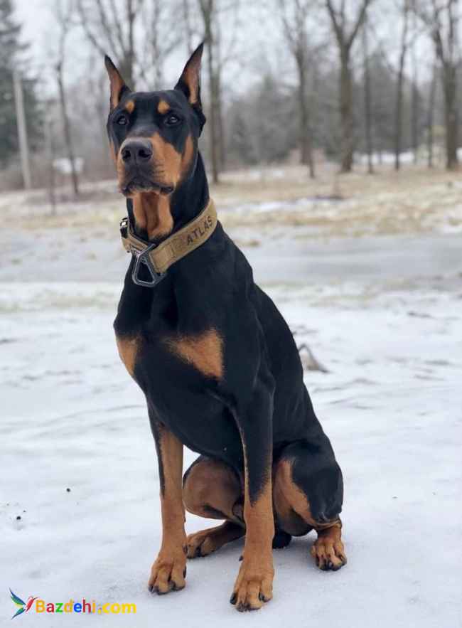 خصوصیت های اخلاقی: هوشیار، وفادار، بی باک قد: 66 تا 71 سانتی متر (نر)، 61 تا 66 سانتی متر (ماده) وزن: 34 تا 45 کیلوگرم (نر)، 27 تا 41 کیلوگرم (ماده) طول عمر: 10 تا 12 سال دوبرمن پینچر با دارا بودن بدنی قدرتمند و هوش بالا، یکی از نجیب زاده های دنیای سگ ها محسوب می شود. این نژاد بسیار بی باک و هوشیار، با افتخار در بین بهترین سگهای محافظتی جهان قرار می گیرد. خرید و فروش سگ نگهبان،گله،گارد با قیمت مناسب توله سگ دوبرمن پینچر مشکی و بلوطی دوبرمن اروپایی و آمریکایی