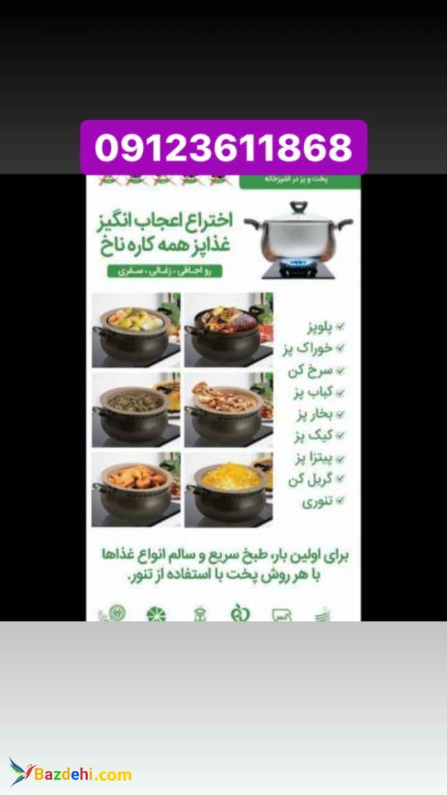 غذاپز همه کاره ناخ ثبت اختراع شده در ایران و محصول صادره به آلمان جنس کوره از هاردانادایز به جز ماهیتابه و قابله بقیه قطعات با سیم ظرفشویی قابل شست و شوست ارسال به سراسر شهرهای ایران و کشورهای همسایه مصرف کم انرژی و صرفه جویی در زمان پخت قابل سرخ کردن با کمترین روغن حتما ویدئو را مشاهده بفرمایید