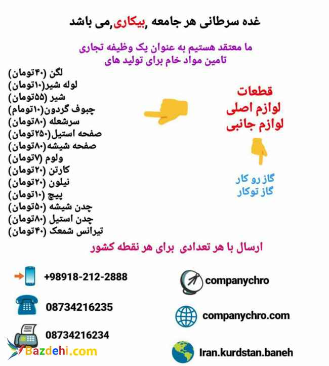 شرکت بازرگانی تجاری چرو با بیش از 80 هزار محصول وارد کننده و تامین کننده ارسال برای تمام نقاط کشور دارای نماد اعتماد الکترونیک دارای بیش از 522 نمایندگی خدمات در سراسر کشور عرضه بی واسطه تمام محصولات با کمترین قیمت و بهترین کیفیت خدمات،گارانتی،تامین قطعات،پشتیبانی کالا در کل کشور بر عهده شرکت جهت مشاوره و دریافت لیست کامل کانال ها پیام دهید @mikailxalidi @mikailkurdish جهت مشاهده محصولات میتوانید از ربات بازرگانی چرو دیدن فرمایید @companychro2010_bot همچنین جهت اطلاع از تمام خدمات و اخبار شرکت بازرگانی چرو میتوانید عضو کمپین بازرگانی چرو شوید @companychro2030 #شركت_بازرگانی_تجاری_چرو #بازرگانی_چرو #چرو #chro #companychro