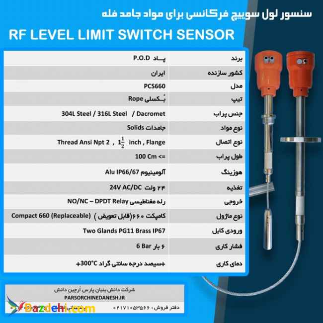 لول سوئیچ خازنی جایگزین لول سوئیچ خازنی اندرس E+H و وگا VEGA ساخت شرکت دانش بنیان پارس اُرچین دانش ✅ POD PCS660 برای جامدات با دما بالای سیصد درجه ✅ POD PCS550 برای مایعات غیر چسبنده وجامدات پودری دما پایین ✅ POD PCS440 برای مایعات غیر چسبنده وجامدات پودری دما پایین ✅✅ لول سوئیچ خازنی(سطح سنج خازنی-لول سنج خازنی-ارتفاع سنج خازنی) وگا از تجهیزات ابزار دقیق مقرون بصرفه می باشد که جهت تشخیص وکنترل نقاط سطح یا ارتفاع ،در مواد جامد و مخصوصا جامدات (پودری-گرانولها)درسیلوها ومخازن کاربرد دارند ✅✅ لول سوئیچ های خازنی درصنایع سیمان،گچ،آرد و گندم،پودر شیر،مواد دارویی پودری،فولاد،خوراک دام ،شیشه و درصنایع غذایی کاربرد وسیعی دارند ✅✅ فروش انواع سطح سنج های جایگزین شرکت اندرس E+H و وگا VEGA ساخت شرکت دانش بنیان پارس اُرچین دانش با گارانتی و وارانتی ●●■■ مشاوره فنی و آموزش نصب و تنظیم رایگان | فروش و تحویل در سریعترین زمان | ارسال به تمام نقاط کشور ■■●● ✅ جهت استعلام قیمت، تعیین مشخصات فنی، زمان تحویل ، قیمت نهایی و هماهنگی جهت ارسال قطعه با ما در تماس باشید. ✅وبسایت WWW.PARSORCHINEDANESH.IR ☎️ دفتر تهران 02171053566 ☎️ واتساپ 09120602365 (مهندس سلیمی)