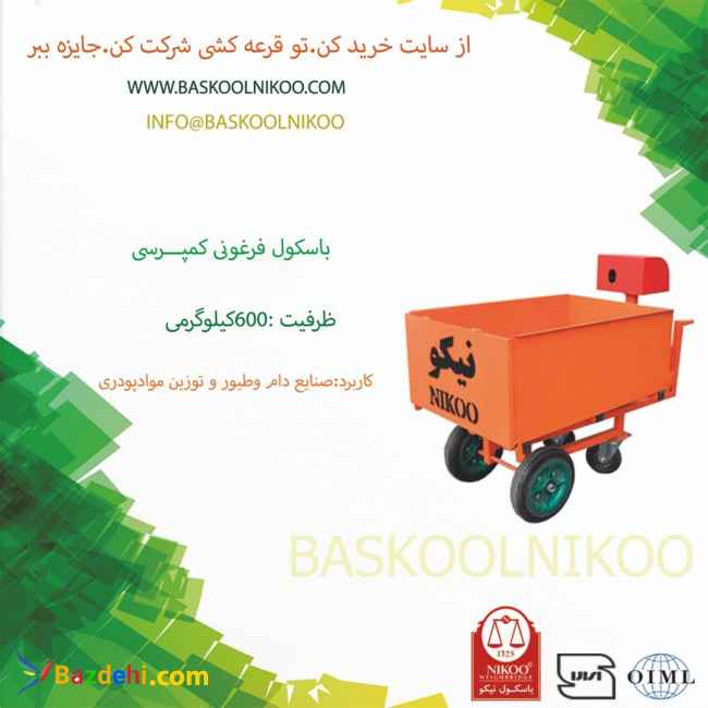 باسکول فرغونی 600 کیلوگرمی 4 چرخ درب کمپرسی ابعاد کف لگن 70*100 ارتفاع لگن 50 فابلیت قفل درب قابلیت نصب انواع نمایشگر قابل استفاده با برق و باطری