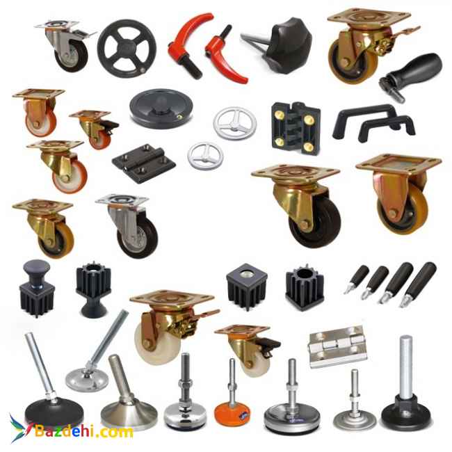 تامين كننده و عرضه كننده انواع قطعات صنعتي و يراق آلات كابينت انواع چرخ و پايه صنعتي دستگيره و فلكه صنعتي گل پيچ و گل مهره چفت و بست ته پروفيل لولا صنعتي