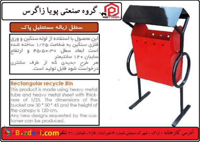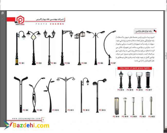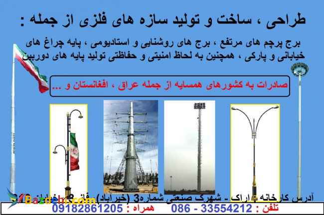 شرکت فنی مهندسی پویا زاگرس تولید کننده در زمینه روشنایی و مبلمان شهری مانند نیمکت های پارکی، سطل های زباله پارکی و شهری، تجهیزات ورزشی و تجهیزات پارکی، وسایل بازی تاب و سرسره و ... برج های نوری، پایه چراغ های خیابانی و پارکی، ایستگاه های اتوبوس و آلاچیق، پایه بنر و تابلو معابر، پایه و برج پرچم و ... می باشد. ( هماهنگی برای بازدید از شرکت و یا استعلام قیمت از طرق زیر اقدام شود. باتشکر از توجهتان. امانی کارشناس فروش: 09187615327 ) آدرس کارخانه : اراک شهرصنعتی 3 خیرآباد فاز3 خیابان 310 تلفن کارخانه : 08633554212 داخلی 101 فکس : 08633554215