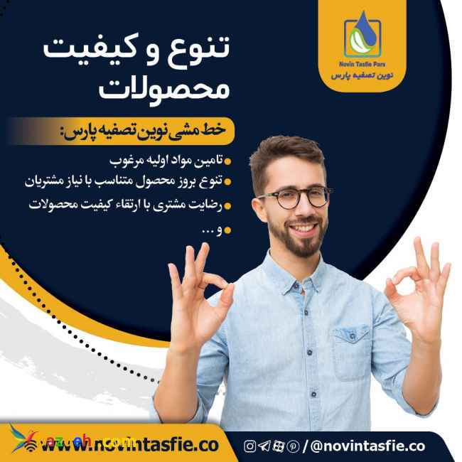 طراح و سازنده انواع دستگاه های تصفیه آب (آب شیرین کن) صنعتی ، کشاورزی ، دامپروری و طیور مرکز تخصصی فروش و تعمیر انواع سیستم های تصفیه آب و آب شیرین کن های صنعتی نیمه صنعتی وخانگیRO فروش انواع آنتی اسکالانت ، موادهای شستشوی ممبران ، بایوسایدها ، دترجنت ها ، انواع اسید و قلیا و انواع محلول های ضد رسوب و ضد خوردگی برای دیگ های بخار و بویلر ها و ... فروش قطعات مصرفی به قیمت کارخانه