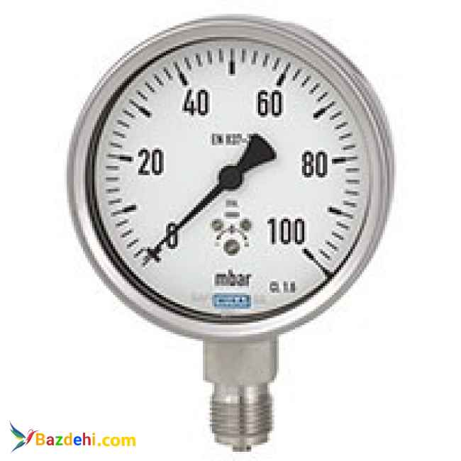 گیج فشار ویکا 632.50 مدل 632.50، 633.50، NS 63، 100، 160 برنامه های کاربردی ■ ■ با مواد مایع پر شده برای کاربردهای با فشار بالا و یا ارتعاشات بالا ■ برای رسانه های گازدار، خشک و تهاجمی، همچنین در محیط تهاجمی ■ ■ صنایع فرایند: صنایع شیمی / پتروشیمی، دارویی، بیوتکنولوژی، ماشین آلات تولید و تولید انرژی ویژگی های خاص ■ ■ تنظیم صفر ■ ■ جنس از فولاد ضد زنگ ■■ محل اتصال ویژه در صورت درخواست ■■ مقادیر کم در محدوده 0 … 2.5 mbar است شرح طرح EN 837-3 اندازه اسمی در میلیمتر 63، 100، 160 کلاس دقیق 1.6 رنج کاری NS 63: 0 … 40 mbar به 0 … 600 mbar NS 100: 0 … 16 mbar به 0 … 600 mbar NS 160: 0 … 2.5 mbar به 0 … 600 mbar محدودیت فشار ثابت: ارزش مقیاس کامل نوسان: 0.9 برابر مقدار مقیاس کامل دمای مجاز محیط: -20 … + 60 ° C متوسط: حداکثر 100 درجه سانتیگراد اثر دما هنگامی که دمای سیستم اندازه گیری انحراف پیدا می کند از دمای مرجع (+ 20 ° C): حداکثر ± 0.6٪ / 10 K از مقدار مقیاس کامل نسخه استاندارد اتصال فرآیند فولاد ضد زنگ 316L پایه پایین (LM) NS 63: G ¼ B (نری)، SW 14 NS 100، 160: G ½ B (نری)، SW 22 عنصر فشار فولاد ضد زنگ 316L آب بندی FPM / FKM تنظیم صفر جلو اشاره گر آلومینیوم سیاه و سفید پنجره شیشه ایمنی لمینیت (مانومتر ) (مانومتر )
