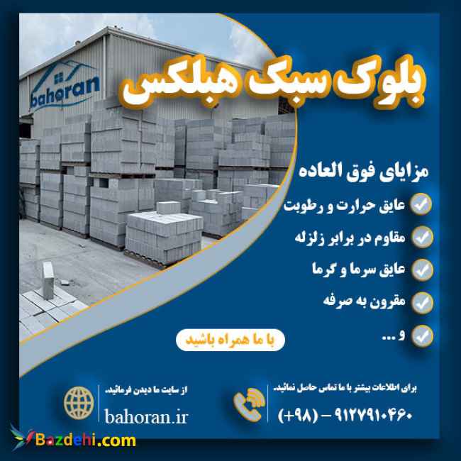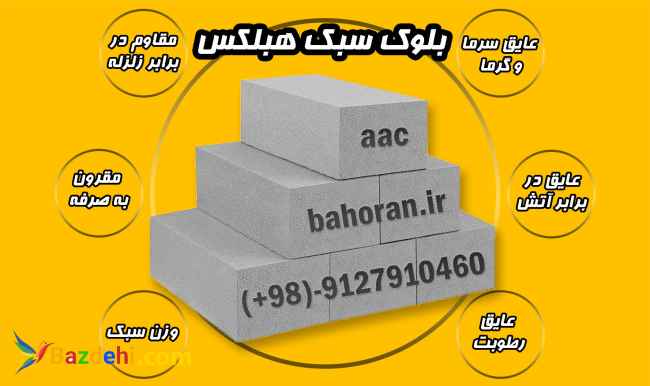 بلوک سبک هبلکس بهترین انتخاب بلوک سبک اتوکلاوشده هبلکس، در مقایسه با مصالح سنتی در بالاترین رده قرار دارد.به این دلیل که این نوع بلوک سبک هبلکس به شکلی طراحی و ساخته شده است که جایی برای خطا و نقص باقی نمی گذارد.بلوک های سبک هبلکس،بسیار مقاومت فشاری بالایی دارند و به صرفه ترین انتخاب یک مهندس یا تولیدکننده خواهند بود. انتخاب بلوک سبک هبلکس،علاوه بر مدیریت و کاهش هزینه های شما،سرعت اجرای کار را هم تا چند برابر افزایش می دهد و از هزینه های اضافی جهت طولانی شدن پروژه ی شما جلوگیری می کند. فواید بلوک هبلکس (AAC) وزن کم این بلوک بدلیل سبک بودن ، بار وارد شده به سازه را کاهش داده و همین موضوع باعث مقاومت بیشتر آن در برابر زلزله میشود. مقاومت در برابر حرارت بدلیل وجود حباب در بلوک هبلکس که بصورت شبکه های حبابی است باعث میشود که به هیچ عنوان گرما و سرما از آن عبور نکند و میزان این مقاومت تا حد بسیار زیادی قابل لمس است. مقاومت در برابر آتش و یخ زدگی یکی دیگر از مزایای بلوک هبلکس مقاومت در برابر آتش گرفتگی و یخ زدگیست که در ساخت ساختمان بسیاراهمیت دارد. عایق صوت عایق صوت بودن از ویژگی های پر اهمیت بلوک هبلکس است که امروزه با توجه به گسترش زندگی آپارتمان نشینی ، وباوجود سروصدای بالا ، عایق بودن خانه در برابر صوت از مسائل مهم می باشد. اجرای سریع سازه باتوجه به سبک بودن بلوک هبلکس سرعت اجرای آن نیز بسیار بالا میرود. اندازه بلوک (AAC) دقیق است و ضایعات را به حداقل میرساند. سرعت کار با بلوک های سبک تولید شده سه برابر سرعت دیگر مصالح است این بلوک ها را به راحتی میتوان به هم وصل کرد. این بلوک ها را به راحتی میتوان سوراخ و ارّه کرد. بلوک (AAC) را با چسب به هم متصل میکنند و مشکلات ترک خوردگی به حداقل میرسد.
