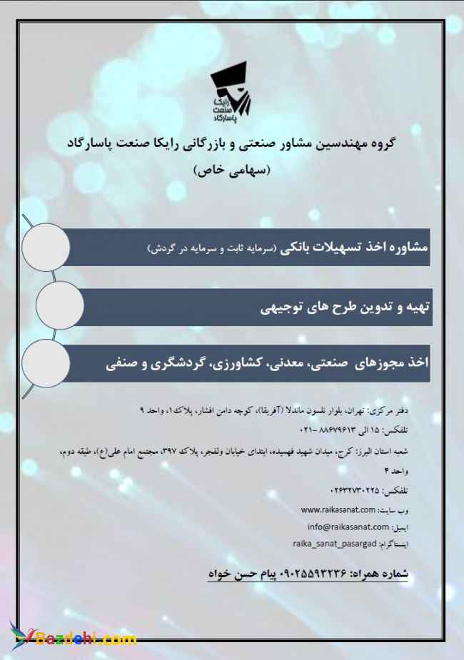مشاوره اخذ تسهیلات بانکی (سرمایه ثابت و سرمایه در گردش) ؛ تهیه و اخذ مجوزهای صنعتی، معدن