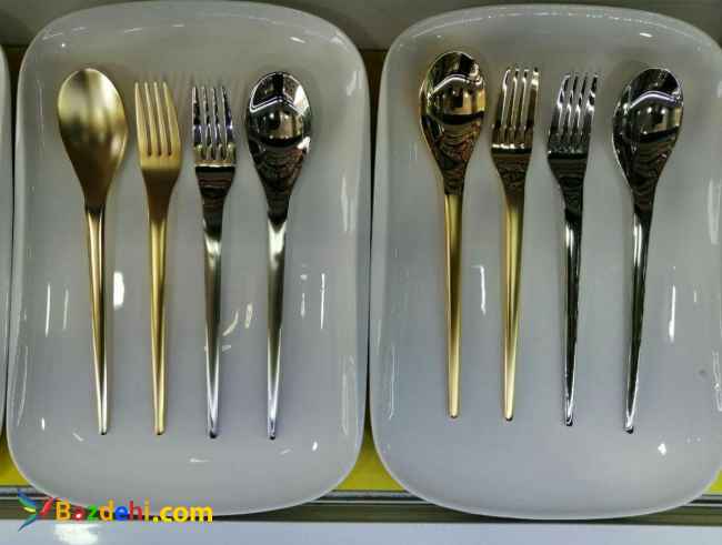 دهنه اروپایی و سفارش اروپا 24نفره کامل قاشق و چنگال 24نفره مرباخوری 12 چایی خوری 12 کارد میوه سه بعدی12 شربت خوری 12 بستنی خوری 6 عسل خوری 6 کره خوری 6 ژله خوری 1 ملاقه بزرگ 4 ملاقه کوچک 1 کفگیر بزرگ 4 کفگیر کوچک(خورشت خوری)4 سالادگیر 2 یخ گیر 2 سوس ریز 1 کارزوچنگال مرغ2 نقره ای(3,140,000تومان) طلایی(5,170,000تومان ) گارانتی ۱۱سال