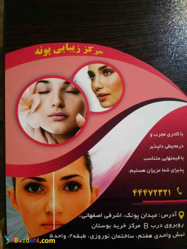 مرکز پوست و زیبایی پونه با کادری مجرب پذیرای خدمت رسانی به شما عزیزان می باشد. انجام کلیه امور زیبایی با     پیشرفته ترین دستگاههای زیبایی شامل موارد زیر می باشد: