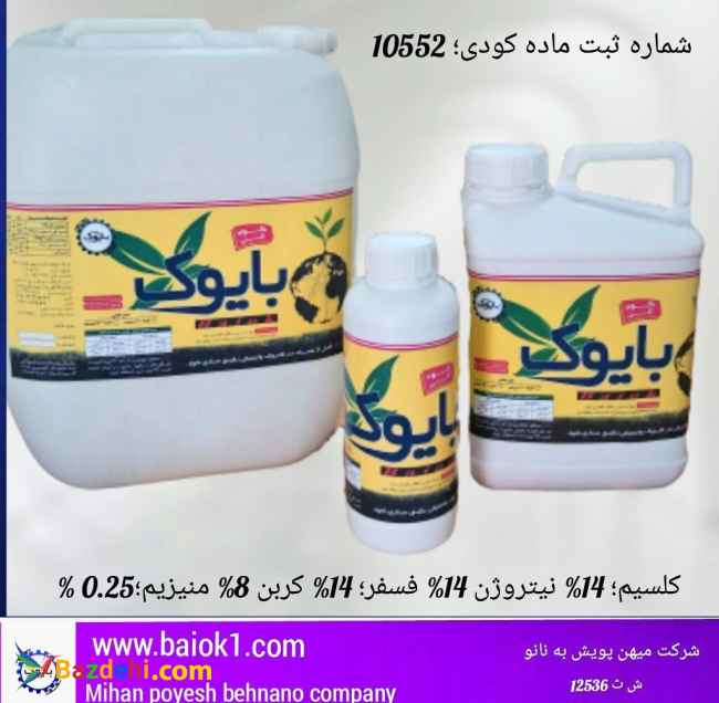 ?انواع کود مایع ویژه ⬅️درختان میوه، گیاهان زراعی، سبزی، محصولات گلخانهای و گیاهان زینتی جهت محلولپاشی و کودآبیاری با حلالیت بالا و کیفیت تضمینی با ?قیمت مناسب موجود میباشد ✅ارزانترین و بهترین در انواع محصولات در بسته بندیهای ١ و ۴ لیتری و پلت مرغی غنی شده و هیومیک اسید گرانول در بستهبندیهای ٢٠ کیلویی "شرکت بایوک" (میهن پویش بهنانو) به شرح زیر موجود میباشد: ?کود کامل مایع نیتروژن بالا بایوک NPK + Ca + Mg : 15-12-7 + 2 + 0.2% ?کود کامل مایع پتاس بالا بایوک NPK + Ca : 8-15-30 + 2 ?کود مایع نیترات کلسیم غنی شده بایوک NPK + Ca + C : 14-14-0 + 14 + 8 ?کود پلت مرغی غنی شده با هیومیک اسید بایوک هیومیک اسید گرانول بایوک برای کسب اطلاعات بیشتر و ثبت سفارش : با شماره ?09003103301 (موذنی) تماس حاصل فرمایید.