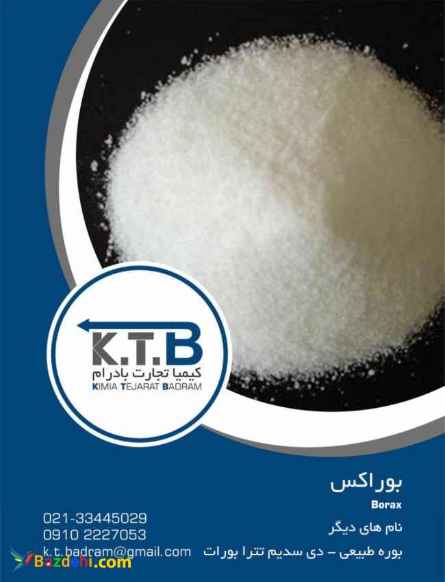 نام های دیگر : بوره - BORAX – نمک اسید بوریک – سدیم بورات – سدیم تترا بورات – دی سدیم تترا بورات فرمول شیمیایی : Na2B407 10H20 درصد خلوص : 99% شکل ظاهری : اصولا بشکل پودر سفید رنگ است . بلور های نرم و بی رنگ که براحتی در آب حل می شوند. بسته بندی : کیسه های 25 تا 50 کیلوگرمی گرانول از رسیدن رطوبت و اب به بوراکس جلوگیری می کند تا بهم نچسبند. کاربردهای بوراکس : مواد تشکیل دهنده ی بسیاری از شوینده های شیمیایی ، مواد آرایش و لعاب ها می باشد. در بیوشیمی برای ساخت محلول های بافری بعنوان ماده تاخیر انداز آتش استفاده می شود . ترکیبات ضد قارچ برای فایبر گلاس ها بعنوان فلاکس در متالوژی استفاده می شود. Gmail : این آدرس ایمیل توسط spambots حفاظت می شود. برای دیدن شما نیاز به جاوا اسکریپت دارید راه های ارتباط با ما : 021-33444929 021-33445029 09102227053