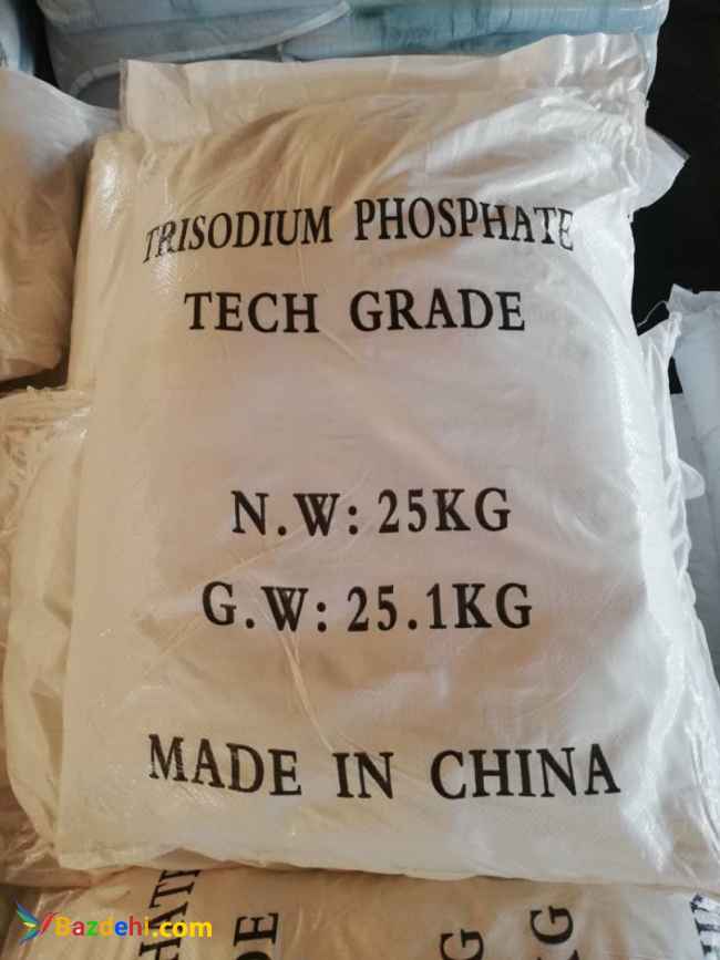 فرمول شیمیایی Na3PO4 کشور تولید کننده چین بسته بندی کیسه 25 کیلوگرمی درصد خلوص 99 جرم مولی 164 گرم بر مول چگالی 1.62 گرم بر سانتیمتر مکعب دمای ذوب 73 درجه سانتیگراد