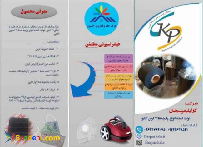 پارچه مدیا فیلتر کربن اکتیو ( زغال فعال ) کربن اکتیو ( زغال فعال ) به گروهی از مواد کربنی متخلخل با سطح تماس بالا اطلاق می شود که در فرایندهای جذب یا واکنشهای شیمیایی مورد استفاده قرار میگیرد . بهدلیل تعداد حفرات بسیار بالای کربن اکتیو ،یک گرم از آن بیش از 3000 متر مربع سطح تماس دارد. تلفن همراه1 :09124638531 تلفن همراه 2 :09101855693 تلفن ثابت :02634764075 آدرس ایمیل این آدرس ایمیل توسط spambots حفاظت می شود. برای دیدن شما نیاز به جاوا اسکریپت دارید آدرس سایت: basparkala.ir آدرس اینستاگرام: basparkala https://instagram.com/basparkala?utm_medium=copy_link آدرس تلگرام : https://t.me/basparkala نام و نام خانوادگی مرتضی زارع دار نام واحد تجاری کاراپلیمرسبحان استان البرز شهر كمال شهر امکانات مشاوره رایگان, پارکینگ, طرف قرارداد بیمه, فروش اینترنتی, فضای باز, امکانات توان یابان, بیرون بر, ارسال رایگان, فروش اقساطی آدرس کرج،پارک علم و فناوری البرز،شرکت کاراپلیمرسبحان به همین دلیل کربن اکتیو جاذبی بسیار قوی است و می تواند بسیاری از مواد زائد و نامناسب را به خود جذب کند .این فرآیند یک عکس العمل شیمیایی است که در آن عناصر مختلف در سطح این ماده جذب می شود. کاربرد مهم کربن اکتیو در تصفیه هوا بویژه در صنایع بهداشتی، غذایی و شیمیایی بویژه جداسازی آلاینده ها، بو، رنگ و مزه های نامطلوب از آب در عملیات تصفیه هوا،خانگی و صنعتی می باشد از جمله کاربردهای کربن اکتیو در صنایع دارویی نیز درمان مسمومیت و اوردوز مواد شیمیایی، پاکسازی پوست، ساخت سفید کننده و خمیردندان و پاکسازی سیستم گوارش می باشد این تکنولوژی سالهاست که در کشورهای پیشرفته استفاده میشود و بسیار قابل اعتماد است.شرکت کاراپلیمرسبحان مستقر در پارک علم و فناوری البرز تولید کننده انواع پارچه ها و فیلترهای کربن اکتیو تولید سفارشی انواع مدیاها و پارچه های کوتینگ شده با سوپرجاذب ها ،مواد نانو،مواد پلیمری،عایق صوت،نانو اپاتیت،نانو روی،نانو مس،نانو تیتانیوم و … در شرکت فناورکاراپلیمرسبحان پذیرفته میشود Bagless vacuum جاروبرقی اتاق سمند اتم کربن احیای فیلتر کربن فعال اندازه فیلتر هود انواع کربن انواع کربن فعال آیا کربن فلز است پودر کربن بدنسازی پودر کربن خوراکی پودر کربن سفید تصفیه دود رستوران تصفیه دود زغال سنگ تصفیه دود صنعتی تصفیه دود ناتصا تعویض فیلتر کابین تیبا تعویض فیلتر کابین ریو تهیه زغال فعال جارو برقی ال جی کمپرسور جاروبرقی ال جی مدل ۸۱۲۰ جاروبرقی فیلتر دار جاروبرقی کمپرسی جای فیلتر هوا سمند ef7 خرید قرص زغال فعال خرید ماسک ffp3 داخل کابین جک s5 روش تولید پارچه کربن فعال در مقیاس آزمایشگاهی زغال فعال از کجا بخریم زغال فعال برای پوست زغال فعال برای مو زغال فعال دیجیکالا ساخت دستگاه تصفیه دود ساخت فیلتر کربن گلخانه طریقه نصب فیلتر ذغالی هود عدد جرمی کربن عکس جاروبرقی ال جی عوارض قرص زغال فعال فیلتر اتاق سورن فیلتر بو فیلتر جاروبرقی ال جی 7520 فیلتر جک s5 فیلتر خروجی جاروبرقی ال جی فیلتر دود کوره فیلتر ذغالی هود چیست فیلتر روغن جک s5 فیلتر زغال اکتیو برای عرق فیلتر کابین فیلتر کابین تیبا صندوق دار فیلتر کابین جک j4 فیلتر کابین ریو فیلتر کابین سرکان فیلتر کابین سمند فیلتر کابین کوپا فیلتر کربن اکتیو دیجی کالا فیلتر کربن اکتیو صنعتی فیلتر کربن برای فیلتر کربن برای عرق کشمش فیلتر کربن فعال یخچال فیلتر کربن گلخان